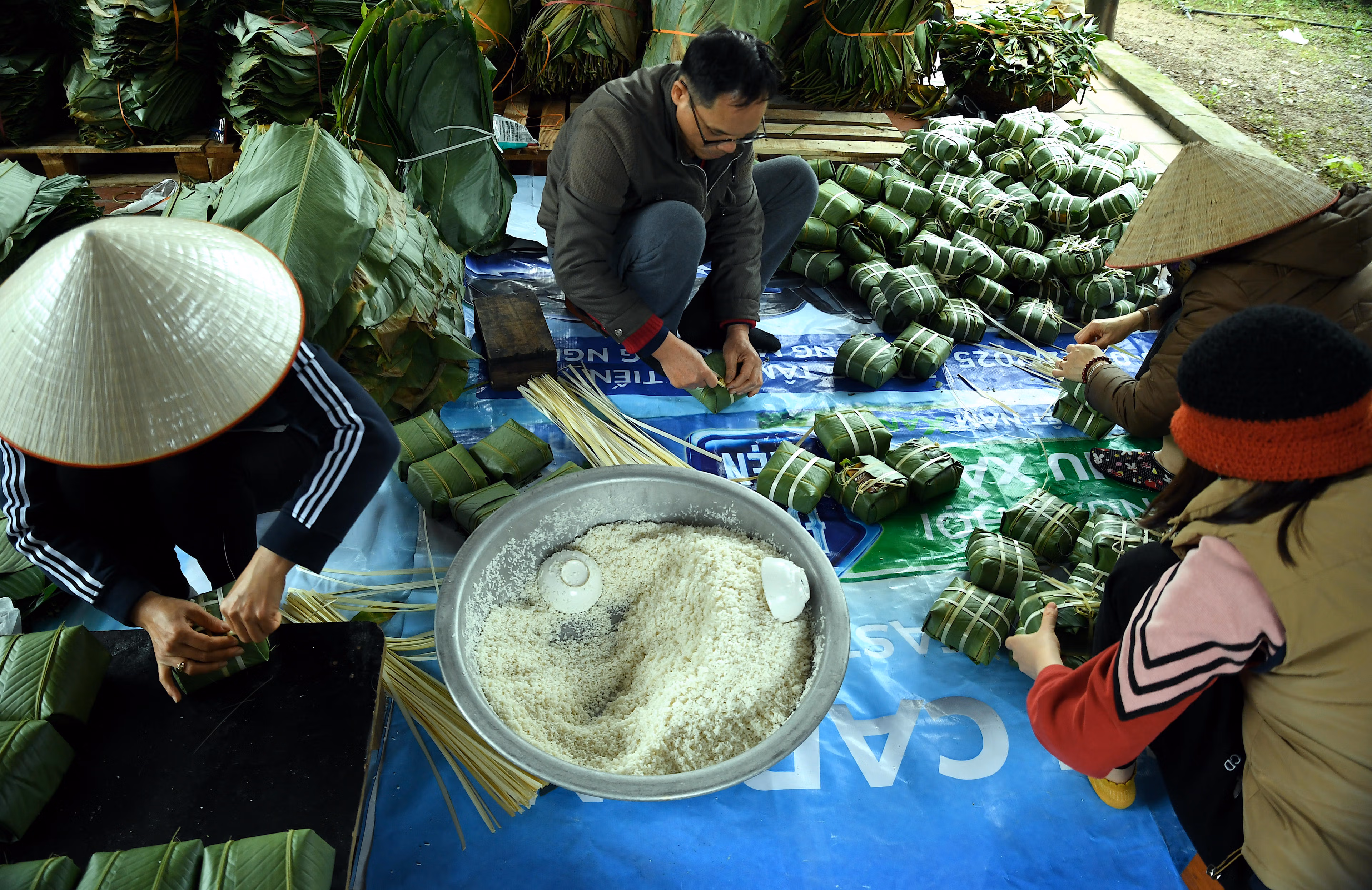 Mùa Tết rộn ràng ở làng bánh chưng Tranh Khúc