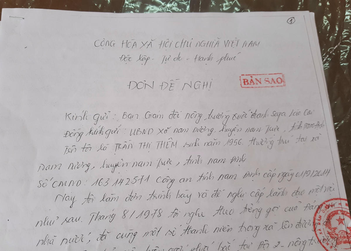 Tuy nhiên, khi lá đơn kèm những lời xác nhận trên được gửi tới chính quyền xã Nam Dương, Phòng LĐ-TB&XH huyện Nam Trực đã bị trả về với lý do: “Không có hồ sơ gốc!”.