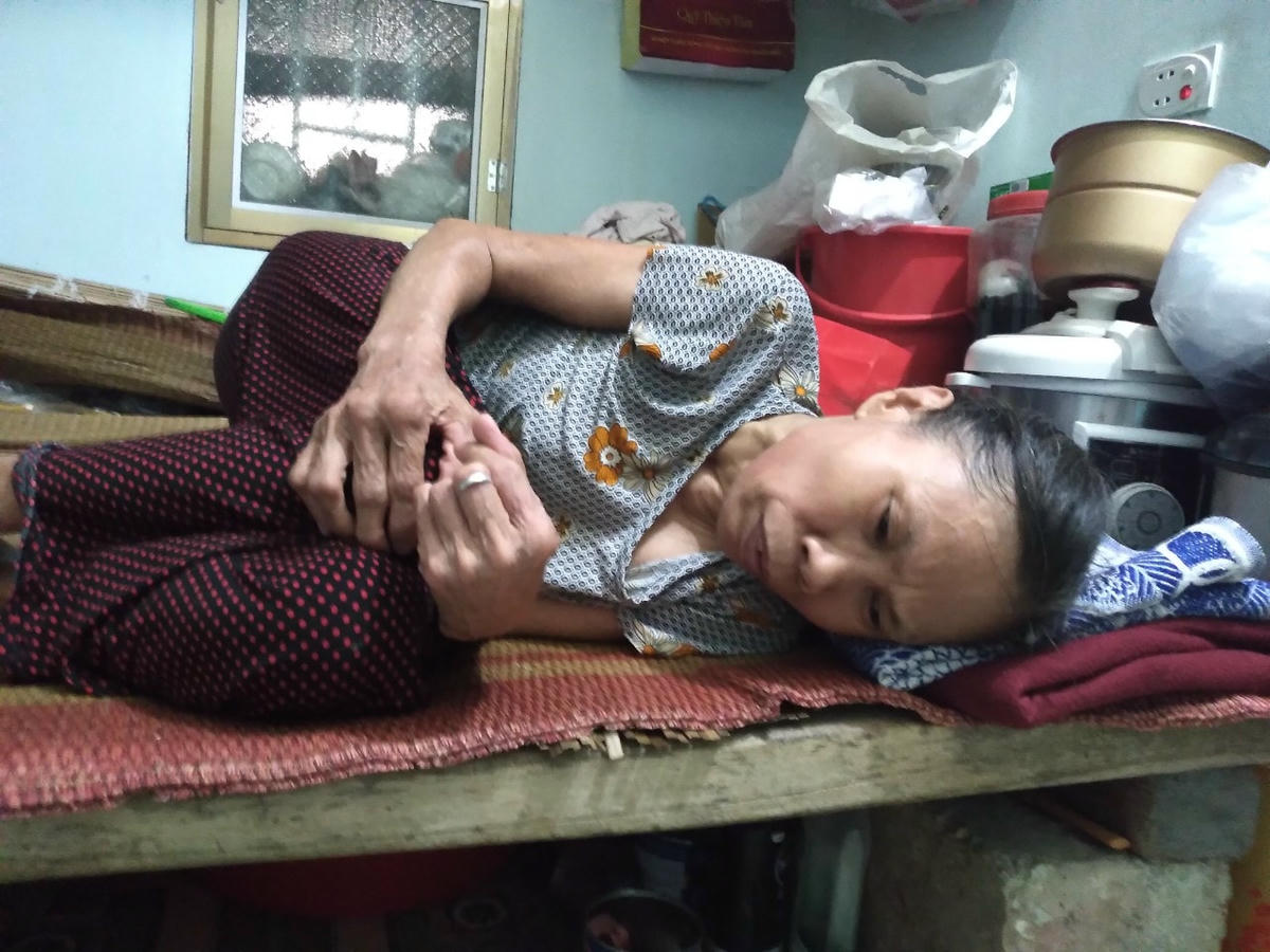 Trò chuyện với bà Trần Thị Thêm (65 tuổi) trong căn buồng chật hẹp của ngôi nhà chật hẹp ở xóm 5, thôn Bái Dương, xã Nam Dương (Nam Trực, Nam Định) chúng tôi được biết gia cảnh hiện tại của bà rất khó khăn.