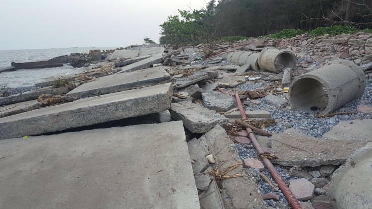 Một số hình ảnh kè biển bảo vệ Khu du lịch sinh thái Rạng Đông bị sập tan hoang, PV Đại Đoàn Kết Online mới ghi lại:
