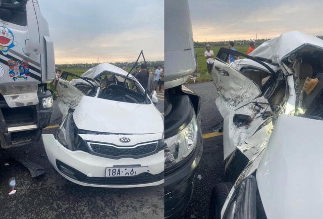 Đến khu vực ngã tư xã Đại An và xã Hợp Hưng (cùng huyện Vụ Bản), đang rẽ về hướng xã Hợp Hưng xe ô tô có 4 người trên và một xe tải xảy ra va chạm. Sau va chạm xe ô tô con bị xe tải kéo lê khoảng 20 m trên đường mới dừng lại, trong tình trạng xe ô tô con đã bị “bẹp dúm”.