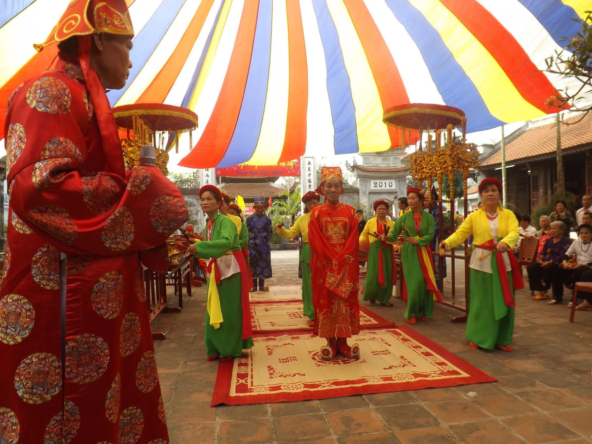 Tiếng trống thùng thùng khích lệ. Tiếng cười tiếng hô gợn sóng giếng đình. Còn nhớ dịp cuối năm, mỗi lần đi ngang đình làng tôi đều phải ngó mắt trông vào. Ở trong đó các bà các cô, các bác các anh đang mải mê, đang say sưa luyện tập. Hỏi ra mới hay những người này dù việc nhà bận rộn tới đâu cũng cố gác lại đó để ra sân đình luyện những điệu múa, luyện những câu quan họ và luyện việc khênh kiệu rước vong Thành hoàng.
