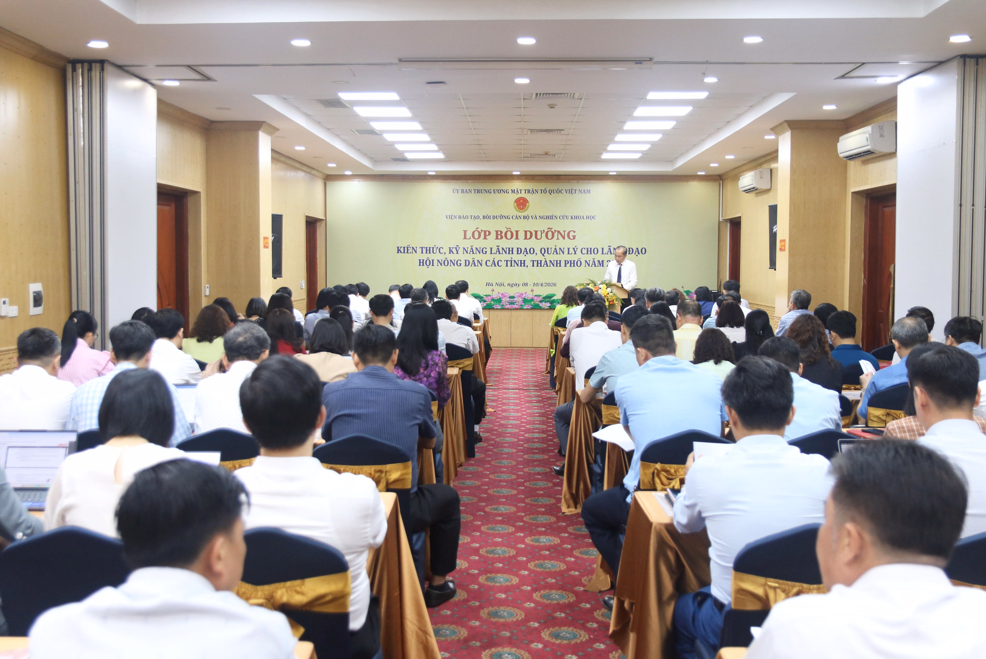 Lớp bồi dưỡng kiến thức, kỹ năng lãnh đạo, quản lý cho lãnh đạo Hội Nông dân các tỉnh, thành phố năm 2026 có sự tham dự của 100 học viên là cán bộ Hội Nông dân các tỉnh, thành phố. Thời gian diễn ra lớp bồi dưỡng từ 8/4 đến 10/4/2026.