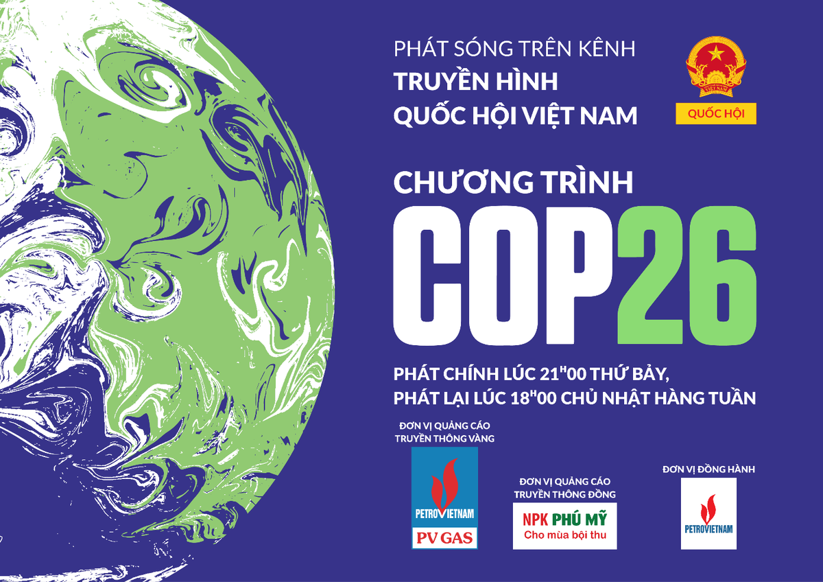 Đề phản ánh tiến trình quan trọng này, với sự hỗ trợ, đồng hành của Tổng Công ty Khí Việt Nam – CTCP, Tập đoàn Dầu khí Việt Nam, Tổng Công ty Phân bón và Hóa chất Dầu khí, Truyền hình Quốc hội Việt Nam phối hợp với các đơn vị liên quan sản xuất và phát sóng chương trình “COP26” phát chính vào 21h00 thứ 7 và phát lại vào 18h00 chủ nhật hàng tuần trên kênh sóng của Truyền hình Quốc hội Việt nam.