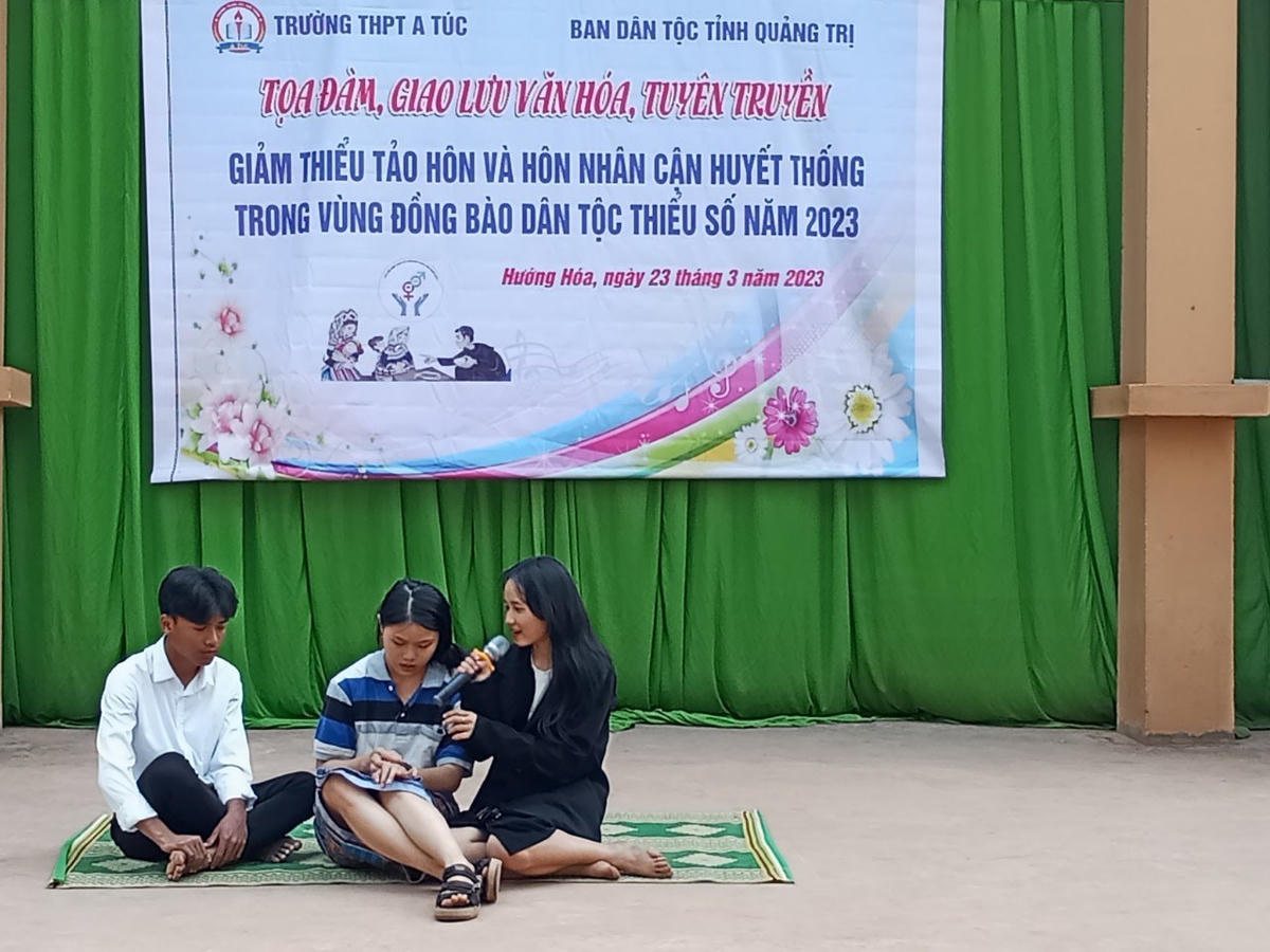 Thời gian qua, tại tỉnh Quảng Trị tổ chức các buổi tập huấn, tọa đàm, hội thi… tuyên truyền, nâng cao nhận thức của người dân hướng tới giảm thiểu tình trạng tảo hôn, hôn nhân cận huyết thống tại vùng đồng bào dân tộc thiểu số và miền núi.