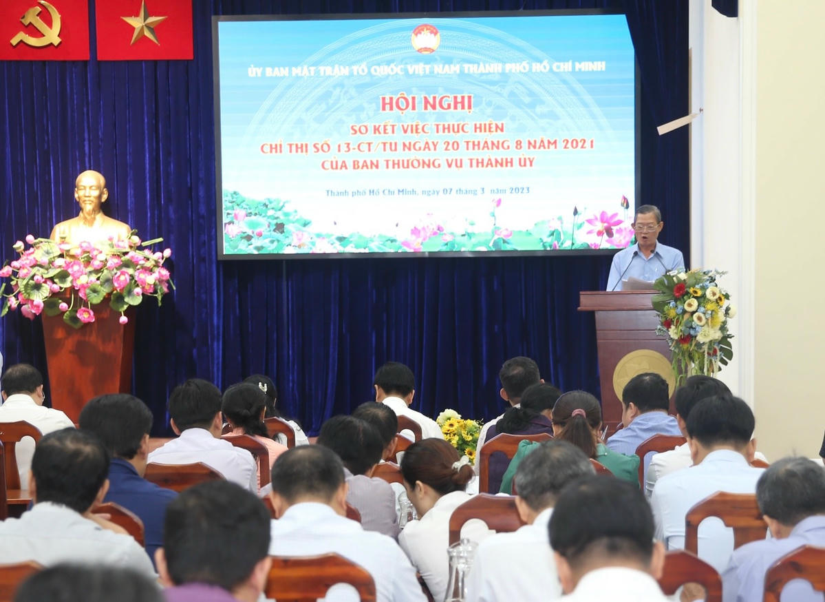 Ngày 7/3, Uỷ ban MTTQ Việt Nam TP HCM tổ chức hội nghị thực hiện Chỉ thị số 13-CT/TU của Ban Thường vụ Thành ủy về lãnh đạo thực hiện Đề án số 06-ĐA/TU “Nâng cao vai trò của MTTQ Việt Nam và Nhân dân giám sát tổ chức đảng, đảng viên và hoạt động của chính quyền các cấp TPHCM giai đoạn 2021 - 2030”.