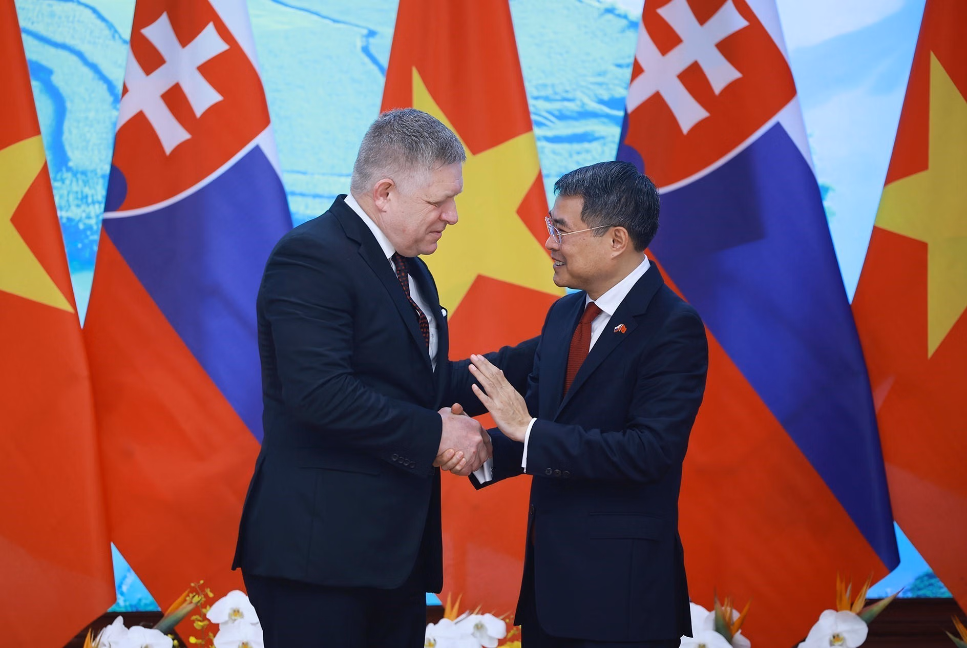 Về phần mình, Thủ tướng Cộng hòa Slovakia Robert Fico cảm ơn về sự tiếp đón nồng hậu mà Thủ tướng Lê Minh Hưng và nhân dân Việt Nam dành cho đoàn.