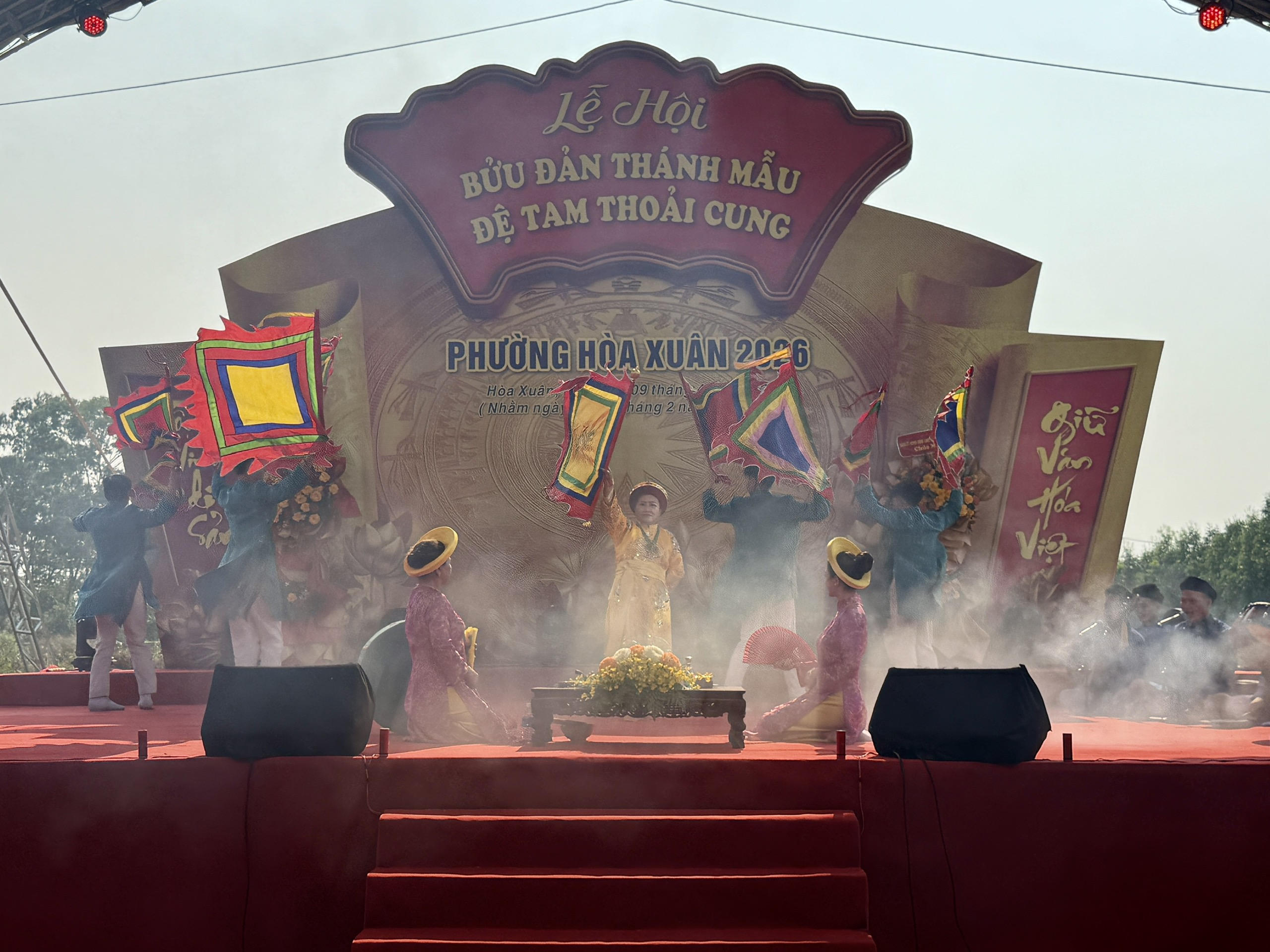 Phát biểu khai mạc, ông Lê Công Đông, Phó Chủ tịch UBND phường, Trưởng Ban Tổ chức Lễ hội Bửu Đản Thánh Mẫu Đệ Tam Thoải Cung phường Hòa Xuân năm 2026, cho biết tín ngưỡng thờ Mẫu Tam Phủ của người Việt đã được UNESCO vinh danh là Di sản văn hóa phi vật thể đại diện của nhân loại vào năm 2016.
