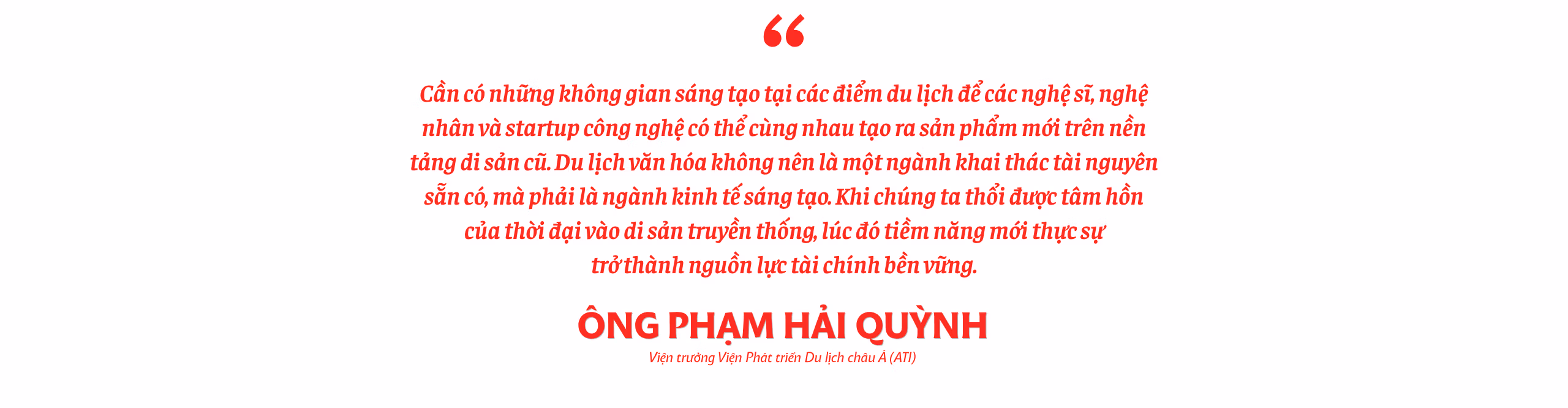 “Cần có những không gian sáng tạo tại các điểm du lịch để các nghệ sĩ, nghệ nhân và startup công nghệ có thể cùng nhau tạo ra sản phẩm mới trên nền tảng di sản cũ. Du lịch văn hóa không nên là một ngành khai thác tài nguyên sẵn có, mà phải là ngành kinh tế sáng tạo. Khi chúng ta thổi được tâm hồn của thời đại vào di sản truyền thống, lúc đó tiềm năng mới thực sự trở thành nguồn lực tài chính bền vững” – ông Quỳnh chia sẻ.
