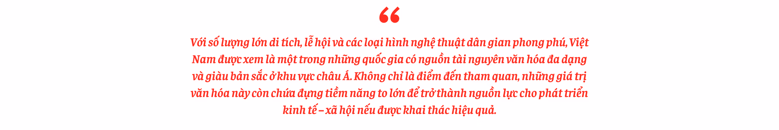 Với số lượng lớn di tích, lễ hội và các loại hình nghệ thuật dân gian phong phú, Việt Nam được xem là một trong những quốc gia có nguồn tài nguyên văn hóa đa dạng và giàu bản sắc ở khu vực châu Á. Không chỉ là điểm đến tham quan, những giá trị văn hóa này còn chứa đựng tiềm năng to lớn để trở thành nguồn lực cho phát triển kinh tế – xã hội nếu được khai thác hiệu quả.