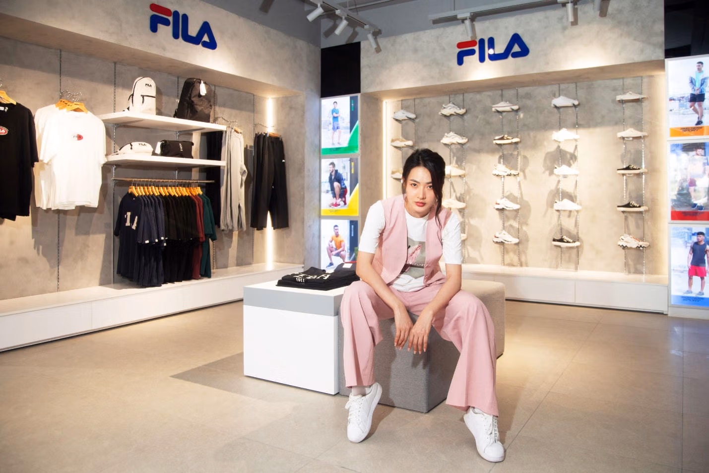 Minh Trang tranh thủ thử trang phục, phụ kiện, trong đó có thương hiệu Fila. Ngoài đời, Minh Trang có gu thời trang đa dạng - khi điệu đà, gợi cảm, lúc bụi bặm, năng động.