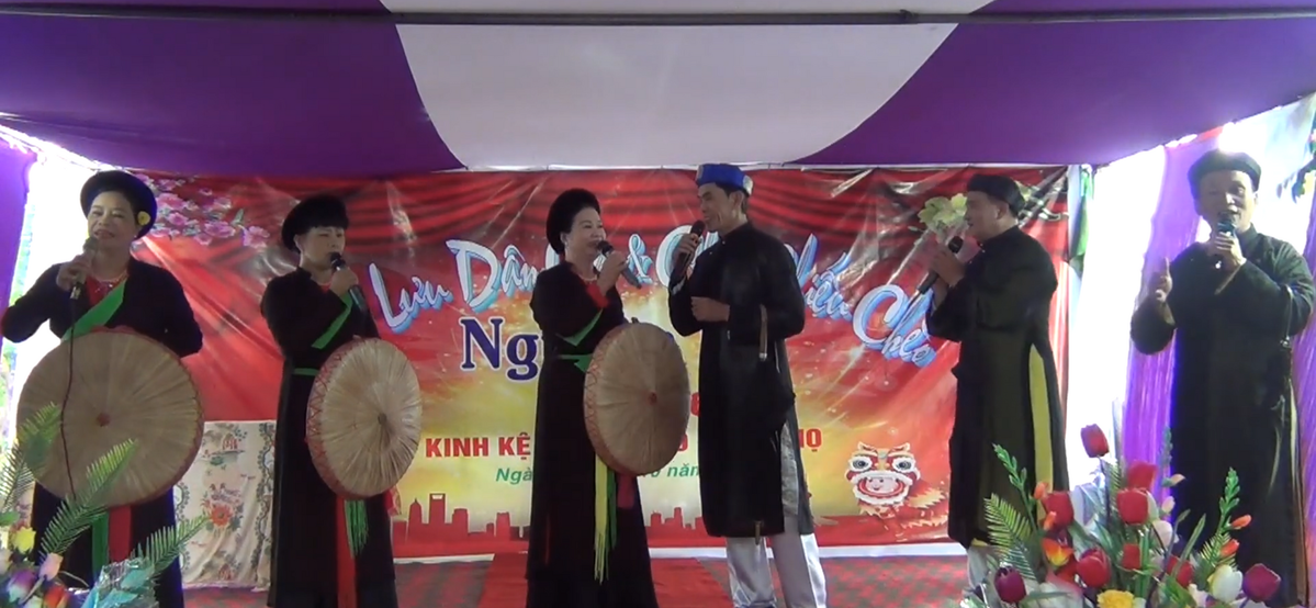 Đang trò chuyện, có tiếng xe máy xình xịch rồi đỗ lại đầu sân, ông Lợi giới thiệu luôn là “tay nhạc chủ công Dương Quý Linh”, người chơi đàn bầu trong chiếu chèo, cũng là quân sư hướng dẫn lão Lợi hát chèo nhiều năm qua. Ông Linh nâng trà chậm rãi, kể về cái thuở mê chèo đến quên ăn quên ngủ, có hôm hai thân già say sưa tập luyện từ tối đến tận ba giờ sáng”. Bà Nguyên, vợ ông Lợi đang lúi húi lấy thức ăn cho gà nghe được câu chuyện, nói với ra: “Ông nhà tôi á, hát í ới suốt ngày. Ra vườn hát, cho cá ăn hát, làm cỏ cũng hát, sắp đi ngủ cũng hát. Tôi còn tưởng ông mê quá hóa… dở hơi ấy”.