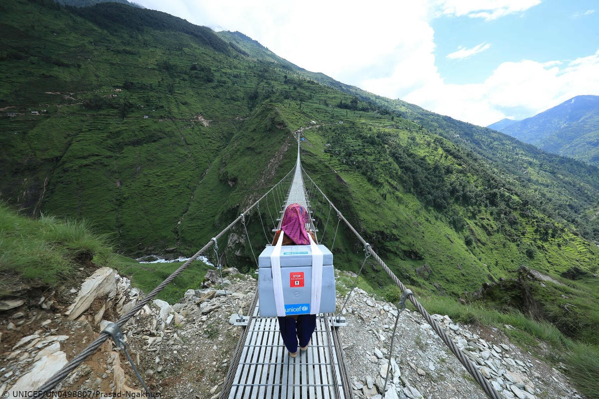Birma, một nhân viên y tế ở Nepal, thường xuyên phải đi bộ hàng giờ lên những ngọn đồi dốc và qua những khe núi sâu để chuyển vaccine đến với người dân ở vùng đất hẻo lánh này. Đây là những nỗ lực đáng kinh ngạc của tổ chức UNICEF nhằm đưa vaccine Covid-19 đến những người dân ở huyện Darchula xa xôi, thuộc khu Mahakali, vùng Viễn Tây Nepal, Nepal.