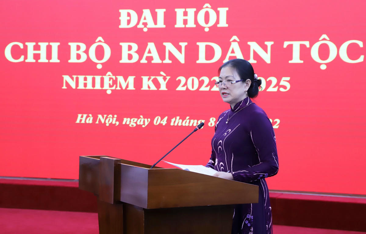 Phó Chủ tịch Trương Thị Ngọc Ánh mong muốn, trong nhiệm kỳ sắp tới, Chi bộ Ban Dân tộc tiếp tục thực hiện tốt nhiệm vụ của Chi bộ theo quy định, đoàn kết, phấn đấu thực hiện thắng lợi Nghị quyết của Đảng bộ cơ quan UBTƯ MTTQ Việt Nam, tích cực thực hiện tốt các nhiệm vụ chính trị của Ban, nhất là việc tham mưu các nội dung công tác cho Đảng đoàn, Ban Thường trực; tiếp tục học tập và làm theo tư tưởng, đạo đức, phong cách Hồ Chí Minh với những nội dung thiết thực, gắn chặt với thực hiện nhiệm vụ chuyên môn của Ban Dân tộc.