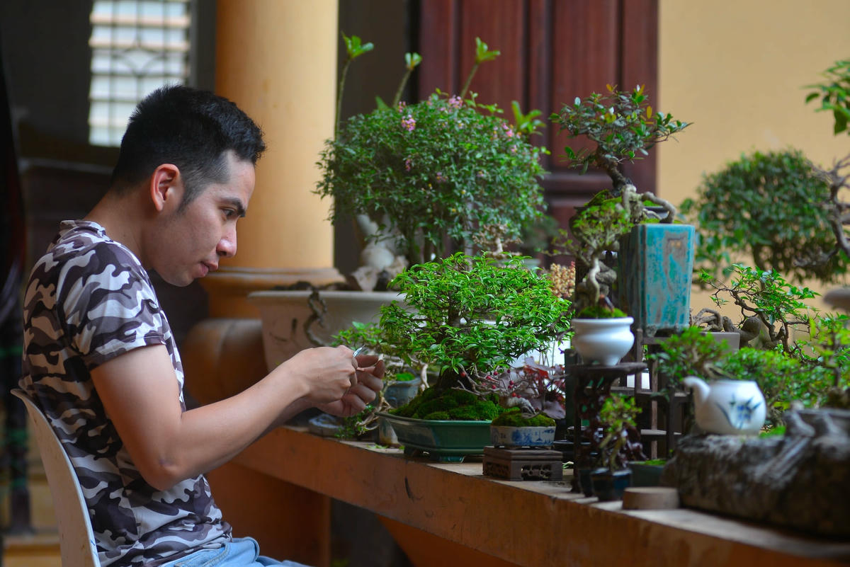 Đối với anh Huy, cây cỏ mang một ý nghĩa đặc biệt. Người ta thường nói: “Nuôi cá dưỡng tâm, nuôi chim dưỡng chí, nuôi cây dưỡng thần”. Với anh, thần ở đây là thần thái, cốt cách bởi chăm cây là cách để tạo ra phong thái riêng biệt cho chủ nhân, muốn có cốt cách thì phải trải qua sự uốn nắn, chăm sóc.