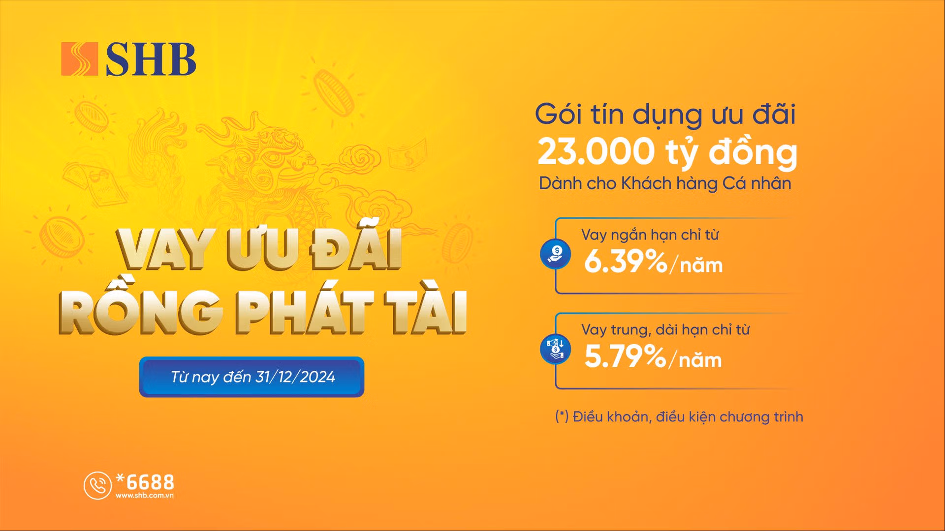 Gần nhất, SHB công bố lãi suất cho vay dành cho khách hàng cá nhân từ 6,39%/năm đối với khoản vay ngắn hạn và từ 5,79%/năm cho khoản vay trung dài hạn, nằm trong chương trình “Vay ưu đãi - Rồng phát tài” với quy mô gói tín dụng 23.000 tỷ đồng. Với riêng cho mục đích mua nhà tại SHB, khách hàng sẽ được hưởng ưu đãi giải ngân tới 80% giá trị bất động sản mua, thời gian vay lên tới 25 năm, thời gian ưu đãi lãi suất và ân hạn gốc kéo dài tới 24 tháng. Đặc biệt, với những khách hàng thân thiết, sử dụng nhiều sản phẩm dịch vụ của ngân hàng có thể được giảm lãi suất thêm tối đa 1%/năm.