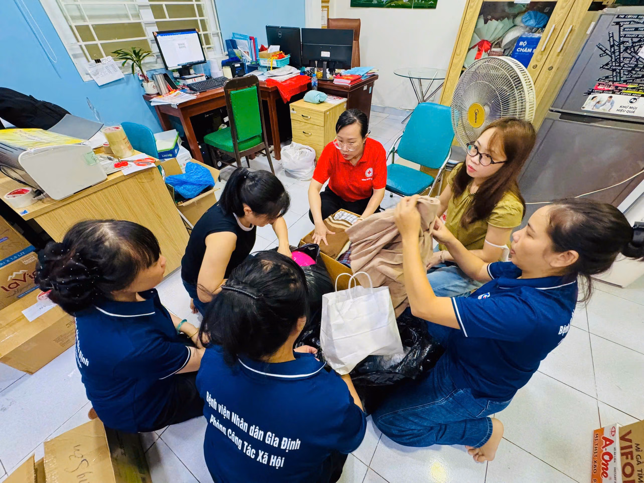 Trong ba ngày từ ngày 22 đến 24/11, bệnh viện đã vận động quyên góp được hàng trăm thùng mì, sữa, nước suối, bánh, băng vệ sinh và nhiều vật phẩm thiết yếu khác trong chương trình “Ủng hộ đồng bào miền Trung bị thiệt hại do bão, lũ lụt”.