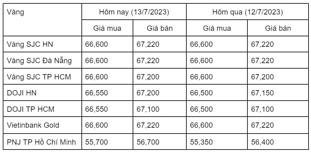 Giá vàng trong nước cập nhật sáng 13/7 như sau: