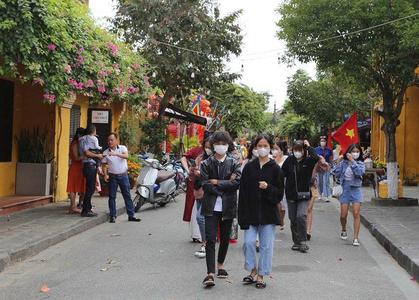 Ghi nhận của chúng tôi, sáng cùng ngày tại các tuyến đường trung tâm phố cổ Hội An như Bạch Đằng, Trần Phú, Nguyễn Thái Học;… rất đông du khách tản bộ.