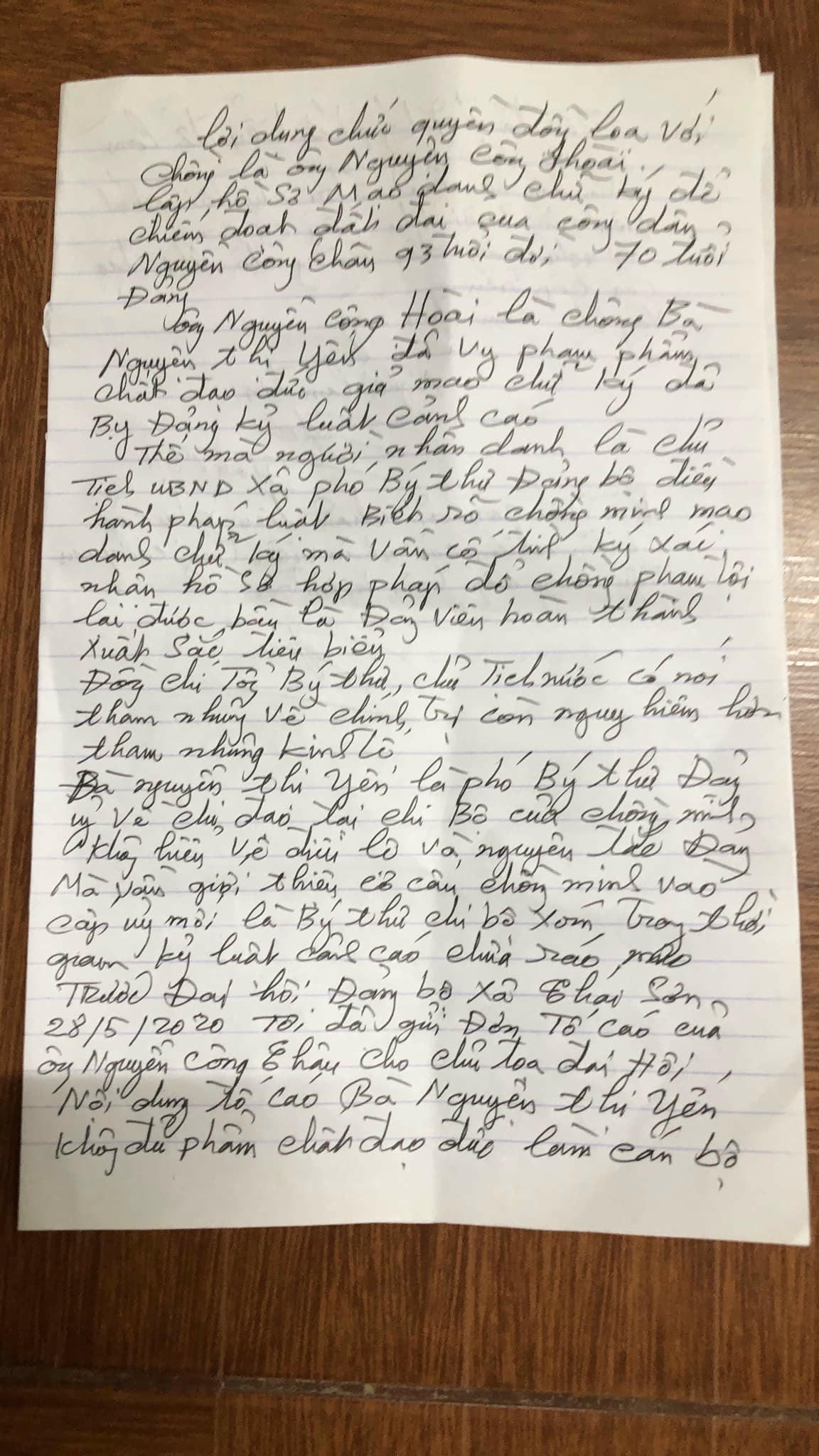 Theo ông Tự, thời điểm trước đó, ông đã đề nghị cấp trên thanh tra rõ tài chính, nhưng huyện lại cử đoàn khảo sát, sau đó cũng không rõ kết quả. Đơn thư thì được chuyển lòng vòng. Bà Yến thì vẫn giữ chức Chủ tịch UBND xã, sau đó được bầu giữ chức Bí thư đảng ủy xã.