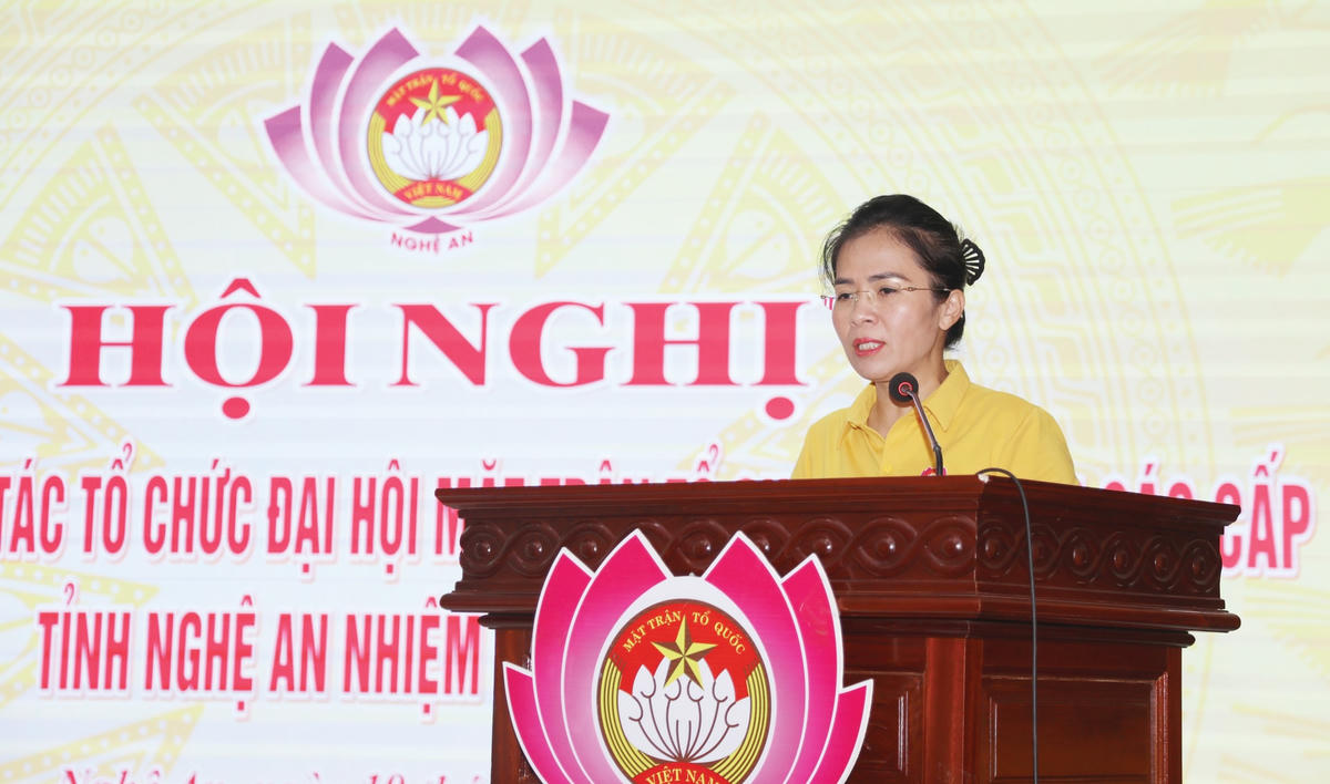 Phát biểu tại Hội nghị, bà Võ Thị Minh Sinh, Uỷ viên BTV Tỉnh uỷ, Chủ tịch Uỷ ban MTTQ tỉnh Nghệ An nhấn mạnh, đại hội là cơ sở để quyết tâm chuyển trạng thái hoạt động từ “Hành chính” sang “Hành động”. Trên cơ sở lấy khu dân cư, tổ dân phố, thôn, bản là địa bàn quan trọng để tổ chức các hoạt động; Xây dựng hình ảnh người cán bộ Mặt trận trong lòng dân, lấy người dân làm trung tâm, lấy sự hài lòng của người dân làm tiêu chí hành động, với phương châm: "Hướng mạnh về cơ sở, lắng nghe tiếng dân, hành động vì dân”.