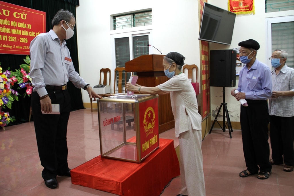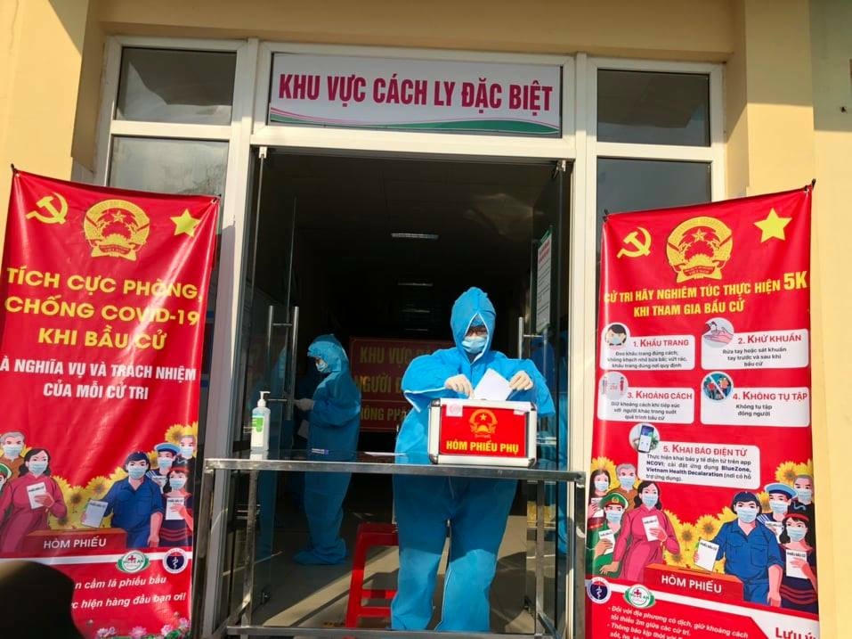 Sáng ngày 23/5, các trường hợp được cách ly, cán bộ công nhân viên tại đây được rửa tay sát khuẩn, thực hiện đầy đủ các biện pháp phòng chống dịch Covid-19. Sau khi tiếp nhận thùng phiếu từ tổ bầu cử, cán bộ bệnh viện đưa vào trong để những cử tri tại đây thực hiện quyền công dân của mình.