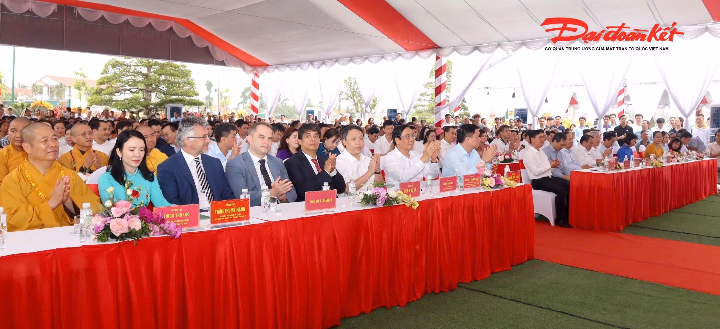 Tham dự sự kiện có nhiều lãnh đạo Trung ương và địa phương như ông Thái Thanh Quý - Ủy viên Ban Chấp hành Trung ương Đảng, Phó Trưởng ban Thường trực Ban Chính sách, Chiến lược Trung ương; ông Lê Quốc Minh - Ủy viên Trung ương Đảng, Phó Trưởng ban Tuyên giáo và Dân vận Trung ương, Tổng Biên tập Báo Nhân Dân, Chủ tịch Hội Nhà báo Việt Nam; ông Nguyễn Khắc Thận - Ủy viên Trung ương Đảng, Bí thư Tỉnh ủy Nghệ An, cùng đại diện các sở, ngành và đông đảo tăng ni, phật tử, người dân địa phương.