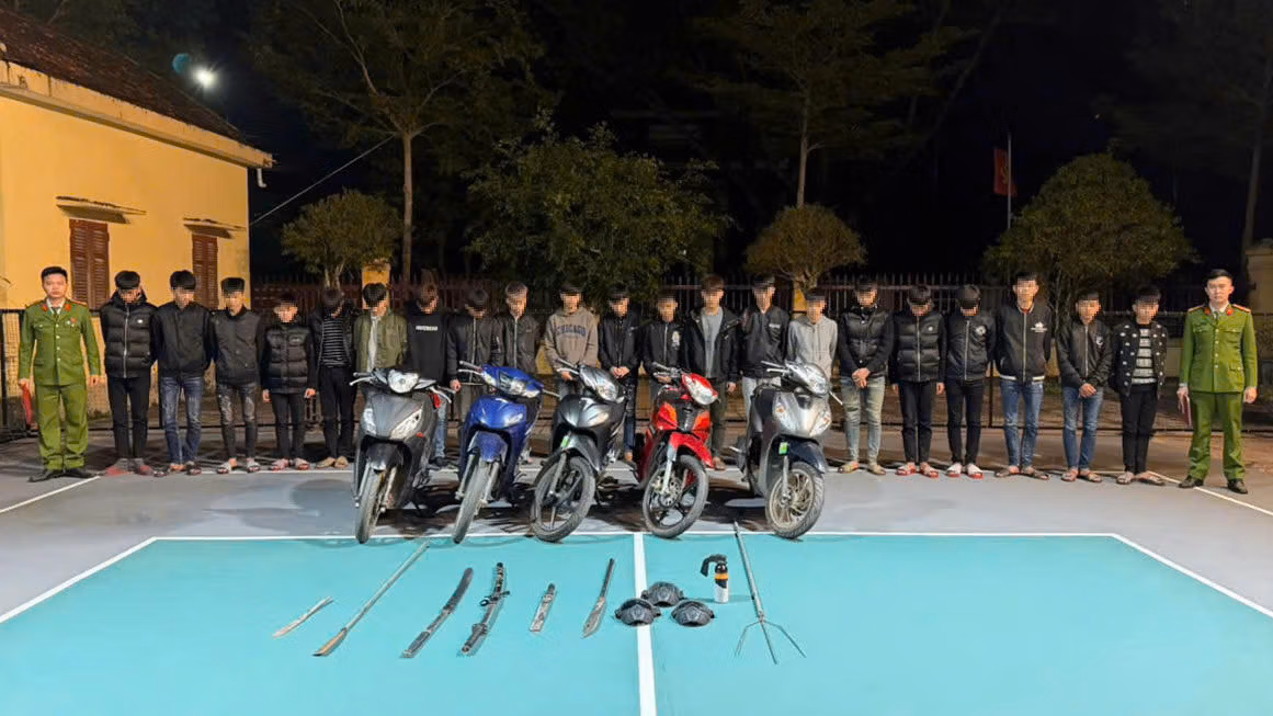Theo Công an tỉnh Nghệ An, trước đó, tối 2/1, Công an xã Minh Châu tiếp nhận thông tin phản ánh về việc có 2 nhóm thanh, thiếu niên che kín mặt, điều khiển xe môtô tháo biển số, mang theo hung khí như gậy baton, kiếm, dao, bình xịt hơi cay rượt đuổi, đánh nhau trên tuyến đường thuộc địa bàn xã.