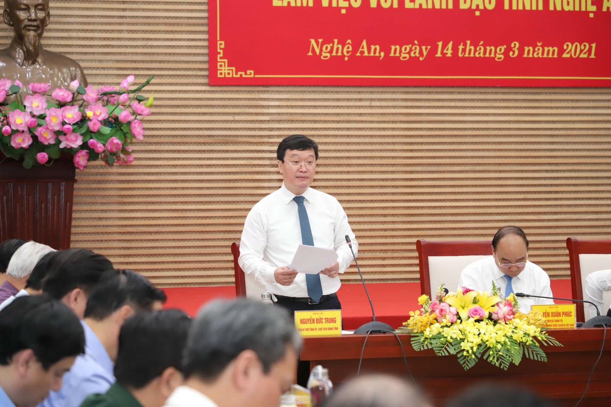Tại buổi làm việc, ông Nguyễn Đức Trung, Chủ tịch UBND tỉnh Nghệ An đã báo cáo với Thủ tướng Chính phủ tình hình kinh tế - xã hội năm 2020 và 2 tháng đầu năm 2021.