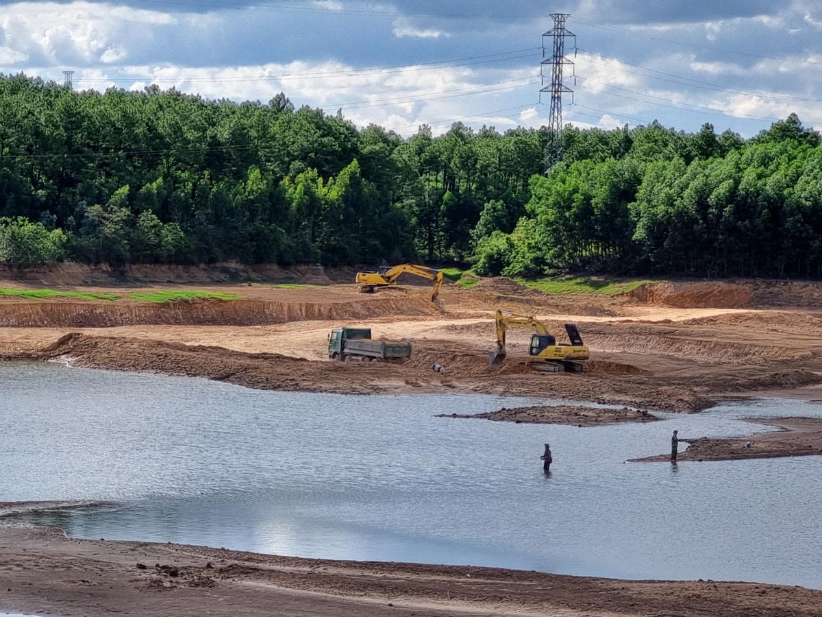 Trên công trường thuộc Dự án Nạo vét, cải tạo hồ chứa nước Điều Gà (xã Vĩnh Ninh, huyện Quảng Ninh, Quảng Bình) cũng sôi động không kém.