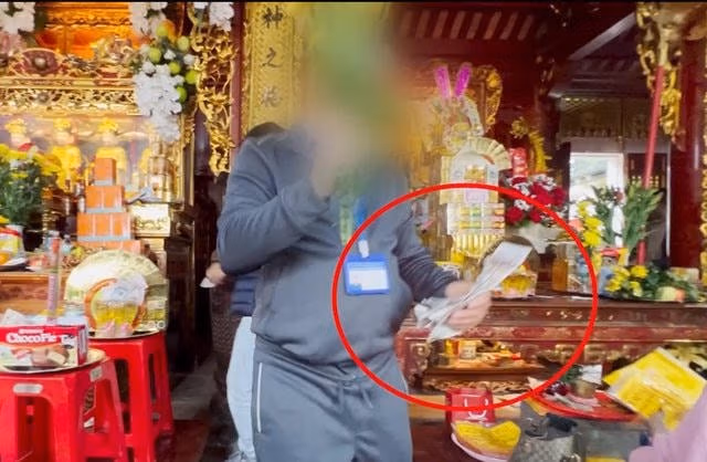 Theo đoạn video phản ánh, một người làm việc tại đền có nhiệm vụ lấy tiền mà du khách để trên các ban thờ trong đền rồi bỏ vào trong các két sắt công đức. Tuy nhiên, người này đã lấy tiền trên các ban thờ rồi nhét vào vỏ hộp bánh quy đã bóc sẵn. Người này sau đó đã đưa về cất tại giường của cá nhân.