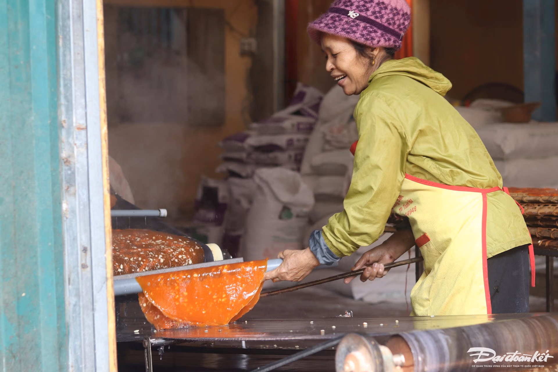 Ngôi làng làm bánh đa gấc, ăn lấy may ngày Tết Thứ Năm 23/01/2025 17:31 (GMT+7) Những ngày giáp Tết Ất Tỵ, người dân làng Đắc Châu ở Thanh Hóa hối hả làm bánh đa gấc để phục vụ nhu cầu của người dân. Làm bánh đa gấc ở xứ Thanh. Video: Đình MinhTheo UBND xã Tân Châu (huyện Thiệu Hóa), nghề làm bánh đa truyền thống ở làng Đắc Châu đã có từ hơn 100 năm trước. Đến nay, toàn xã có khoảng 200 hộ làm bánh đa, bánh đa nem. Ảnh: Đình MinhCận Tết Nguyên đán Ất Tỵ 2025, không khí làm việc bên trong ngôi làng trở nên tấp nập, hối hả khi các đơn hàng gia tăng, người dân phải làm việc cả ngày lẫn đêm để sản xuất đủ sản phẩm. Ảnh: Đình MinhBà Nguyễn Thị Tâm (chủ cơ sở làm bánh Quế Tâm), trú thôn Đắc Châu 2 cho biết: Từ đầu tháng 1/2025 đến nay, các đơn hàng bánh đa bắt đầu tăng mạnh, trong đó, sản phẩm được thương lái ưa thích và thu mua nhiều nhất là bánh đa gấc. Ảnh: Đình MinhLý giải về điều này, bà Tâm cho rằng: Bánh đa được làm từ gấc có màu đỏ bắt mắt, nhiều người quan niệm ăn bánh đa đỏ đầu năm sẽ mang đến sự may mắn, đầy đủ, sung túc trong cả năm. Ảnh: Đình MinhBà Tâm cho biết: Mỗi ngày, cơ sở của bà tráng khoảng hơn 1.000 cái bánh đa gấc, bán với giá từ 7.000 - 10.000 đồng/cái. 'Ngày cận Tết, dù cơ sở đã huy động tới 10 lao động để làm việc nhưng vẫn chưa trả hết các đơn hàng cho thương lái', bà Tâm nói. Ảnh: Đình MinhChị Nguyễn Thị Lan, một hộ làm bánh đa thủ công tại làng Đắc Châu 1 cho biết: Để tạo ra một chiếc bánh đa gấc thơm ngon thì cách chế biến rất quan trọng. Ảnh: Đình MinhNguyên liệu để tạo ra loại bánh này gồm 3 thành phần chính là bột gạo nếp, vừng và hạt gấc. Ảnh: Đình MinhBánh đa gấc Tân Châu được nhiều người đánh giá là có độ thơm, giòn vừa đủ. Trong đó, đáng chú ý nhất là vừng được rắc rất dày, đều và dính chắc nịch vào bánh. Ảnh: Đình MinhVới ước vọng một năm sung túc, nhiều người mua bánh đa gấc về dùng hoặc làm quà biếu cho người thân. Ảnh: Đình Minh Đình Minh