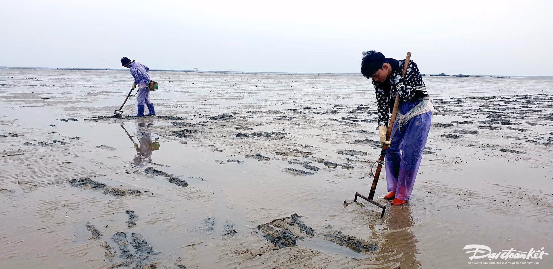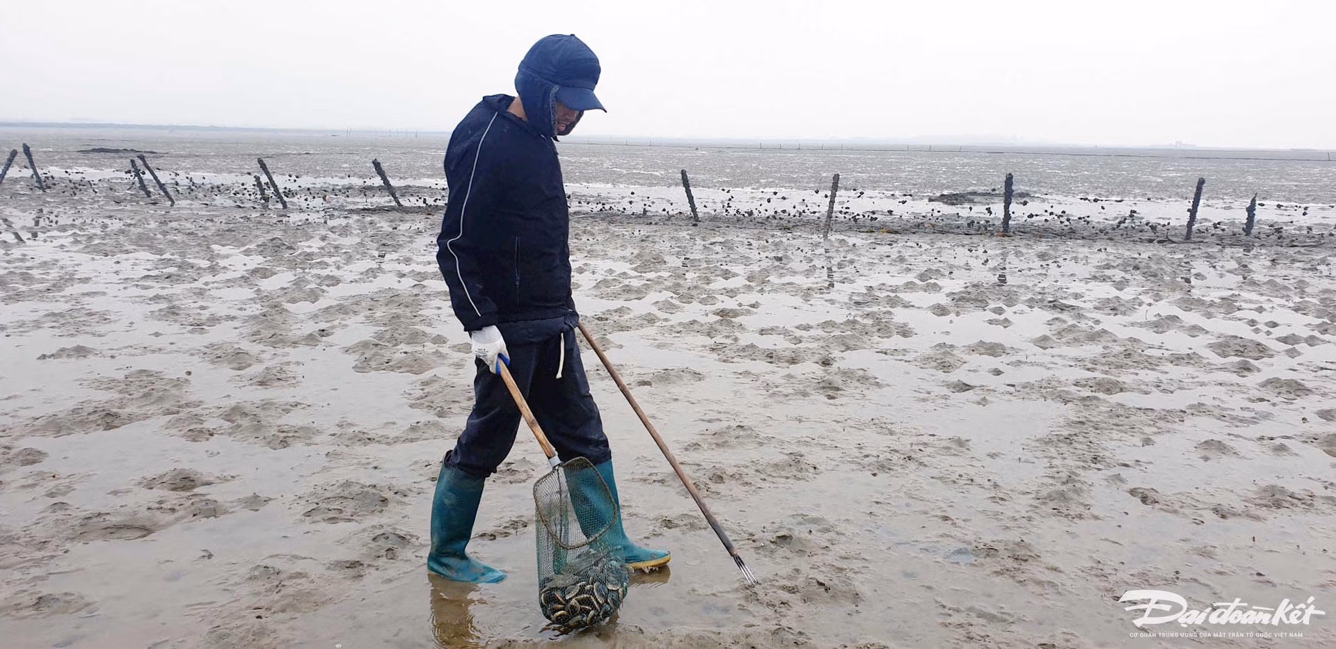 Ngư dân làng biển Hải Hà mưu sinh trong giá lạnh Thứ Hai 29/01/2024 15:19 (GMT+7) Dưới nền nhiệt 7-8 độ C, ngư dân Hải Hà (Quảng Ninh) vẫn lặn lội trên bãi triều với đủ các nghề mưu sinh. Bãi biển xã Quảng Minh, huyện Hải Hà một ngày cuối tháng 1/2024. Thời tiết giá lạnh không ngăn được bước chân mưu sinh của ngư dân làng biển. Bóng người thấp thoáng khắp bãi triều.Người ra biển có thể là bất cứ ai, từ những thanh niên ...... đến những phụ nữ cao tuổi...... dù là đàn ông...... hay đàn bà.Họ làm đủ các nghề mưu sinh trên bãi triều, như bắt sò...... hay đào sá sùng - loài hải sản đắt như vàng nổi tiếng của Quảng Ninh.... hoặc cào ngao....Mỗi nghề đều có 1 dụng cụ riêng để đánh bắt.Bãi triều khá xa và rộng mênh mông, nên người đánh bắt phải dùng xe máy để di chuyển từ nhà ra biển.Dù thời tiết có khắc nghiệt bao nhiêu, những ngư dân làng biển vẫn theo con nước để xuống bãi triều, như một thói quen từ đời cha ông truyền lại. Mỗi buổi đi biển như vậy, người kiếm ít nhất cũng được 200.000-300.000 đồng. Nguyễn Quý