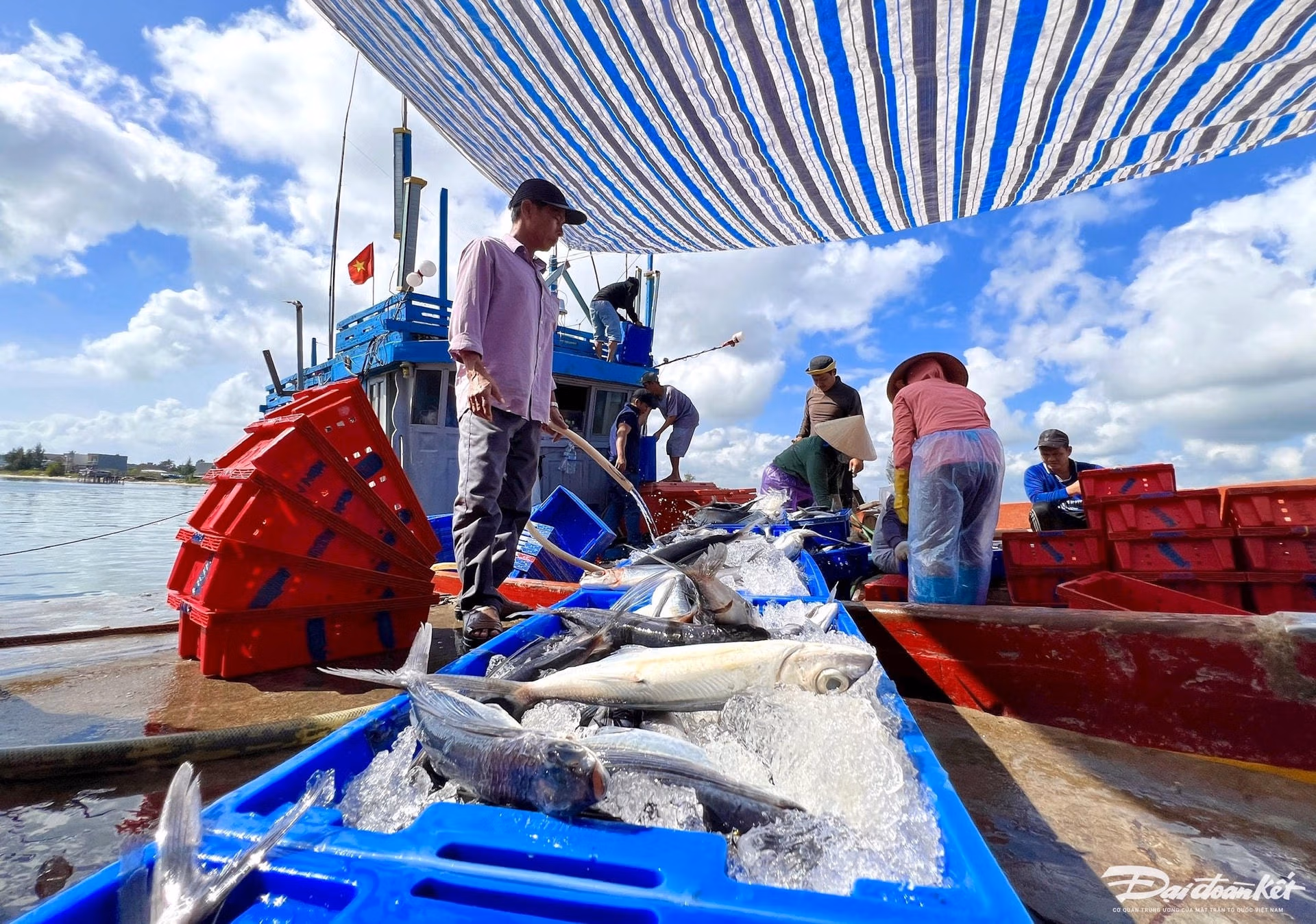 Ngày 3/2, ghi nhận của chúng tôi, cảng cá Sa Kỳ (xã Bình Châu, huyện Bình Sơn,tỉnh Quảng Ngãi) có nhiều tàu cá liên tục cập cảng bán cá cho thương lái, tạo bầu không khí sôi nổi, nhộn nhịp vào những ngày cận Tết.