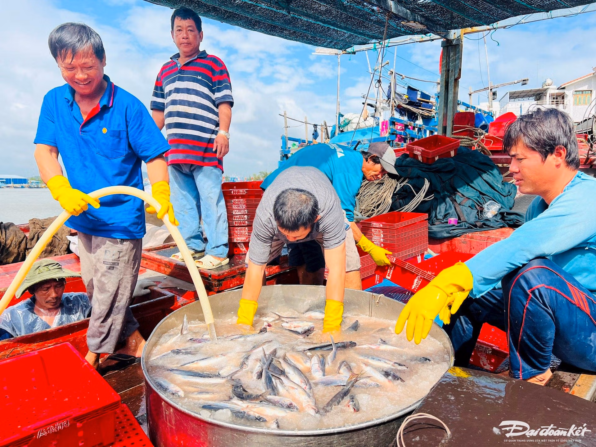 Theo ngư dân Bình, chuyến này đánh bắt được hơn 7 tấn cá các loại, thu về khoảng 600 triệu đồng. Cuối năm nên đánh bắt được bao nhiêu cá đều được thương lái thu mua hết, giá lại cao. Sau khi trừ chi phí, mỗi lao động trên tàu được chia 30 triệu đồng. Anh, em rất phấn khởi vì có tiền cùng gia đình sắm Tết.