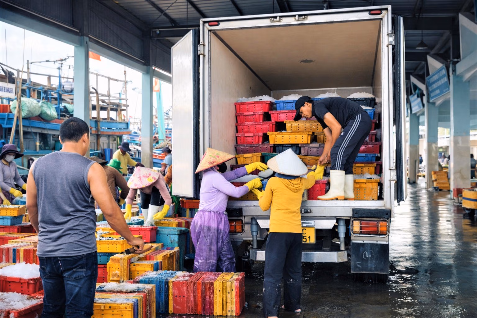 Sau hơn 25 ngày vươn khơi đánh bắt ở ngư trường Trường Sa, tàu cá QNg 92568 TS, ngư dân Lý Hiệp, ở xã An Phú, tỉnh Quảng Ngãi đã cập cảng Sa Kỳ. Ngay khi tàu vừa cập bến, các thuyền viên nhanh chóng bốc dỡ cá từ khoang lên bờ để kịp bán cho thương lái. Không khí tại cảng diễn ra khẩn trương, xen lẫn niềm vui khi tàu trúng mẻ cá chuồn, cá nục trong những ngày cuối năm.