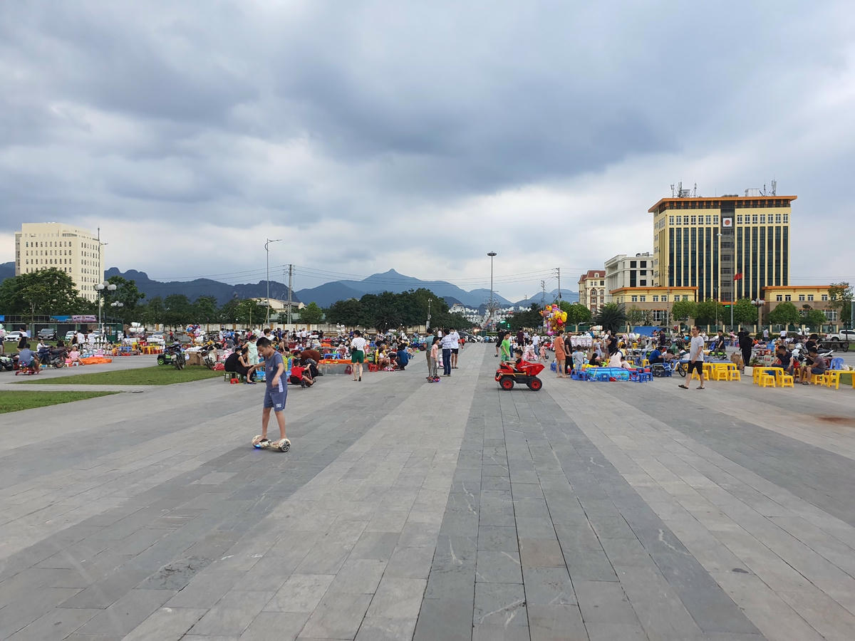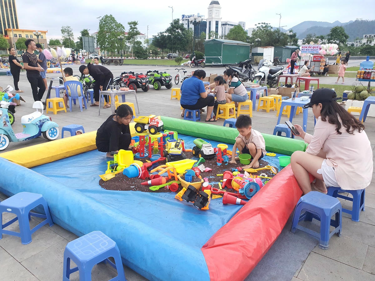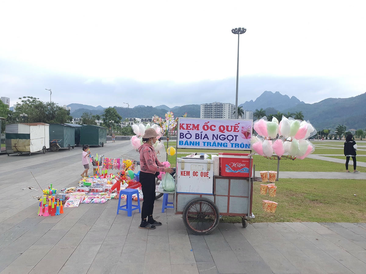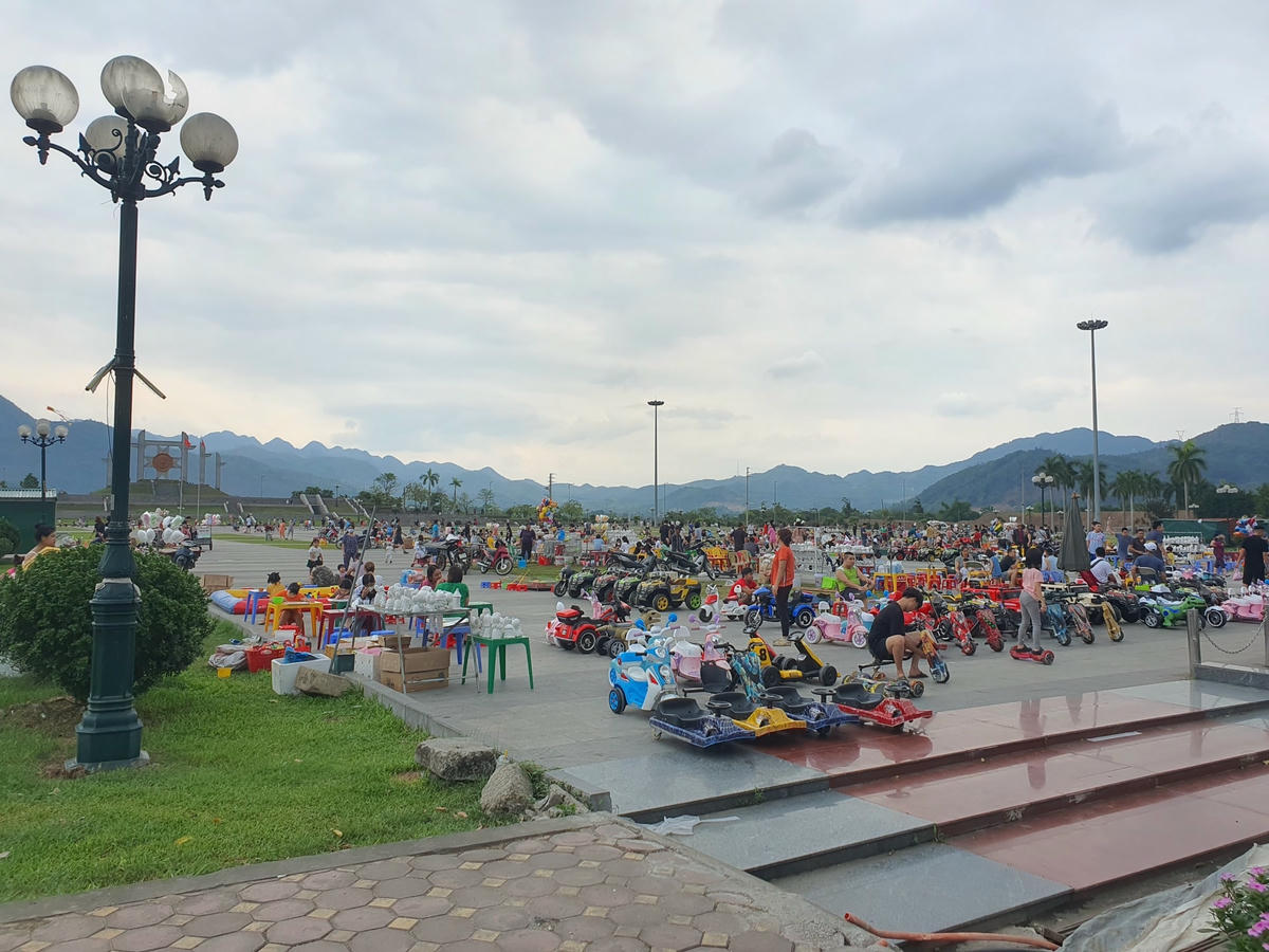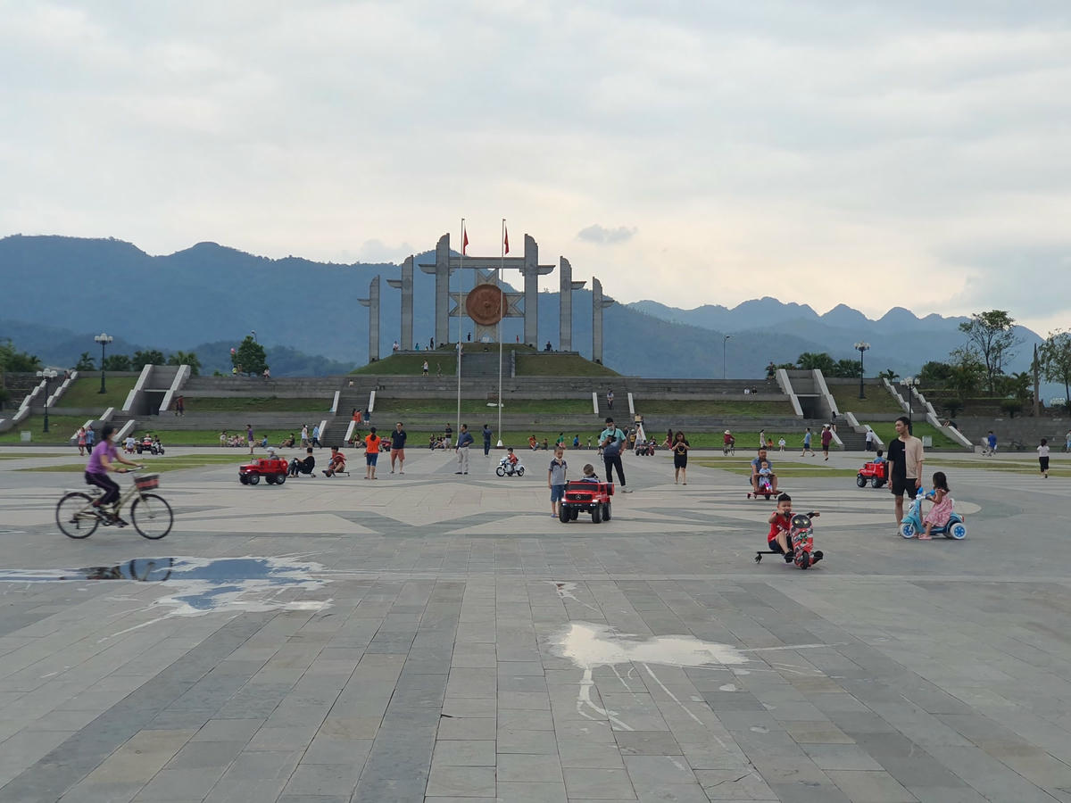 Dù thời tiết đổ mưa nhưng hàng trăm người dân vẫn đổ về Quảng trường tỉnh Hòa Bình để tham quan, vui chơi trong dịp nghỉ lễ 30/4, 1/5.