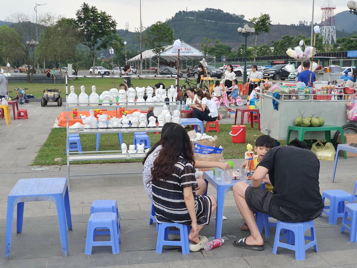 Ghi nhận của PV Báo Đại Đoàn Kết chiều 30/4, dù thời tiết có dấu hiệu đổ mưa nhưng hàng trăm người dân vẫn đổ về Quảng trường Hòa Bình để vui chơi, tham quan trong dịp nghỉ lễ 30 /4 và 1/5.Rất nhiều dịch vụ tại Quảng trường Hòa Bình như cho thuê xe điện, trượt pa-tanh, tô tượng... phục vụ trẻ em, du khách đến tham quan, vui chơi.Chỉ trong khoảng 30 phút, có hàng chục người dân di chuyển về khu vực quảng trường Hòa Bình vui chơi, không khí vô cùng náo nhiệt.Đa phần, các phụ huynh đưa con em mình đến Quảng trường Hòa Bình để có không gian vui chơi, giải trí.Chị Nguyễn Hồng Hạnh (thị trấn Cao Phong) chia sẻ: "Nhân dịp nghỉ lễ 30/4 được nghỉ dài ngày, tôi tranh thủ cho 2 con ra quảng trường chơi, tiện thể thăm người thân ở TP Hòa Bình. Đây là lần đầu tiên tôi đưa các con đến đây, thực sự cảm thấy choáng ngợp vì Quảng trường Hòa Bình rất rộng rãi, khang trang, có đủ loại hình dịch vụ để các cháu vui chơi thỏa thích".Các cháu thiếu nhi đến Quảng trường Hòa Bình vừa để vui chơi, vừa để tập tô tượng vô cùng hào hứng.Nhiều trẻ nhỏ phấn khích khi được ngồi trên những chiếc xe ô tô điện mini dạo quanh Quảng trường Hòa Bình.Một dãy ki ốt mới được xây dựng để phục vụ du khách nghỉ ngơi, uống nước tại Quảng trường Hòa Bình.Được biết, Quảng trường Hòa Bình (Khu đa chức năng Quỳnh Lâm) của TP Hòa Bình, tỉnh Hòa Bình được xây dựng nhân kỷ niệm 130 năm thành lập tỉnh, 25 năm tái lập tỉnh Hòa Bình. Đây là khu phức hợp các công trình về chính trị, kiến trúc, văn hóa, tạo điểm nhấn cảnh quan đô thị của TP Hòa Bình kết hợp tính hiện đại nhưng vẫn khắc họa đậm nét bản sắc văn hóa dân tộc, trong đó có không gian văn hóa chiêng Mường.Quảng trường Hòa Bình được đầu tư gần 250 tỷ đồng, xây dựng trên tổng diện tích 14,5 ha với nhiều hạng mục lát đá, hồ nước, khu khán đài, bục lễ đài... là nơi vui chơi cho nhân dân, tổ chức các buổi lễ lớn của tỉnh Hòa Bình trong các dịp lễ tết, hoạt động ca múa nhạc ngoài trời… Quảng trường Hòa Bình được giao cho UBND TP Hòa Bình quản lý từ tháng 1/2019.