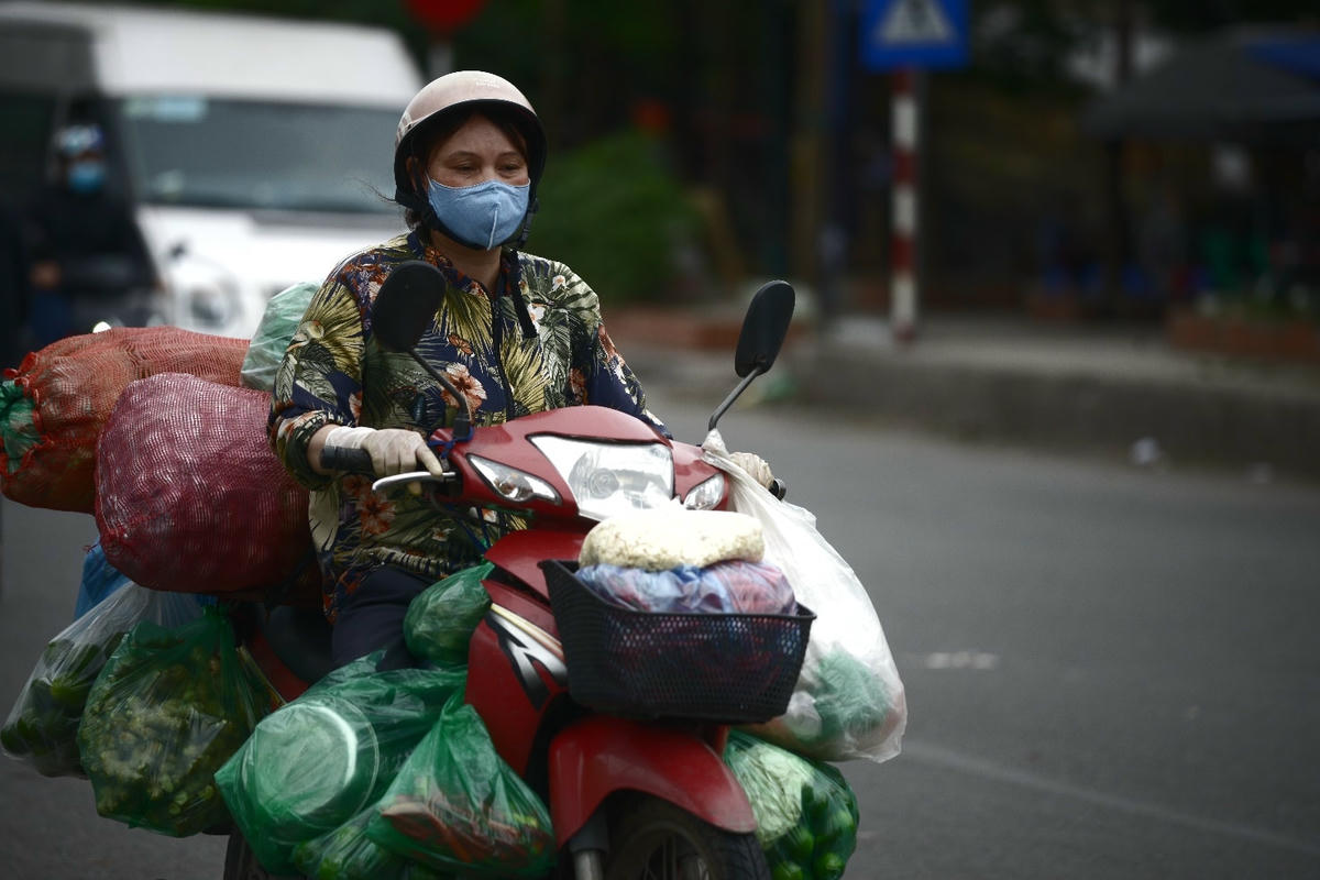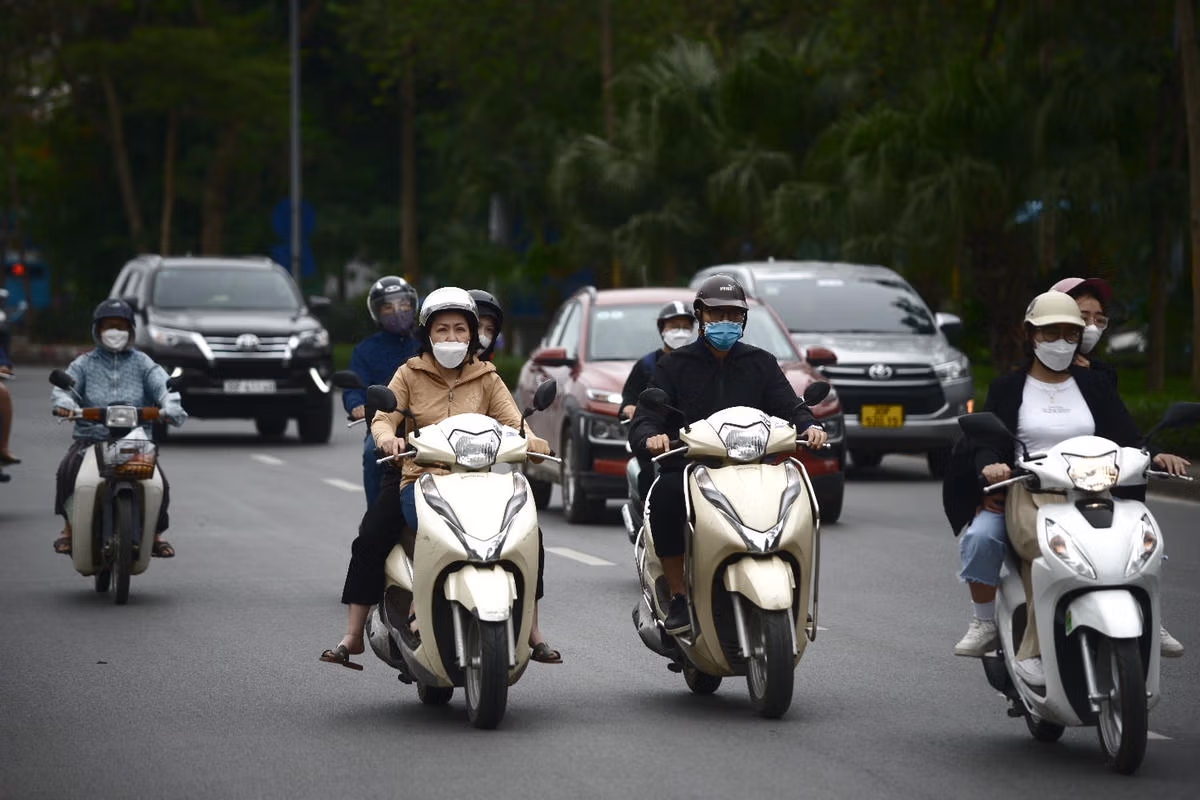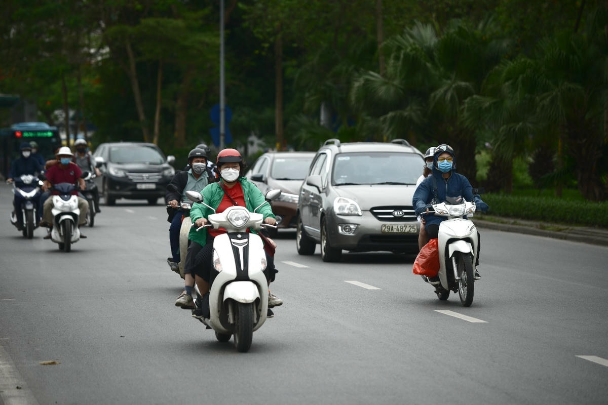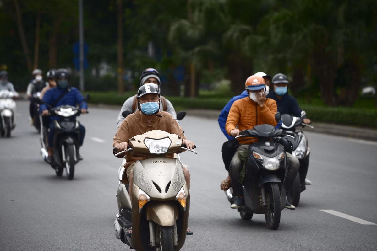 Sáng sớm nay, do ảnh hưởng của không khí lạnh đã khiến không ít người dân Hà Nội co ro khi ra đường, nhiều người đi xe máy phải mặc áo ấm.