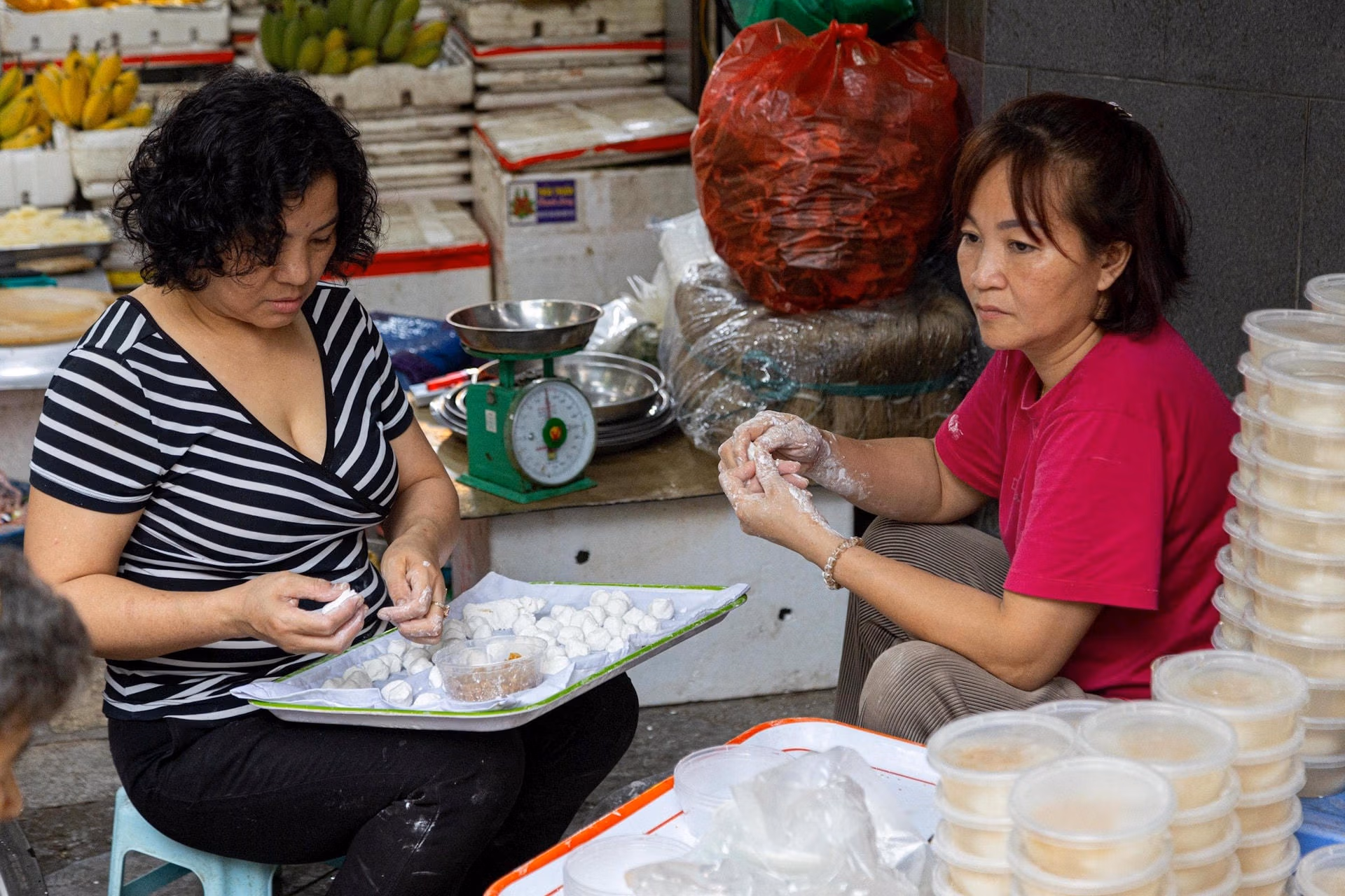 Người dân Hà Nội xếp hàng mua bánh trôi bánh chay cúng Tết Hàn thực Thứ Năm 11/04/2024 10:44 (GMT+7) Ngày 3/3 Âm lịch hàng năm là ngày Tết Hàn thực, vì vậy, vào ngày này các cửa hàng bán bánh trôi, bánh chay rất đông đúc người tới mua hàng từ sáng sớm. Theo ghi nhận của PV Báo Đại Đoàn Kết, ngày 3/3 Âm lịch hàng năm là ngày Tết Hàn thực, còn được gọi là Tết bánh trôi, bánh chay. Vào ngày này, theo tục lệ truyền thống, các gia đình dâng bánh trôi, bánh chay cúng với ý nghĩa con cháu hướng về tổ tiên, nguồn cội. Vì vậy, ngay từ 6h sáng 11/4 (tức 3/3 Âm lịch), nhiều khách đã xếp hàng kín cửa hàng chè nổi tiếng trên phố Ngô Thì Nhậm (quận Hai Bà Trưng, Hà Nội) để chờ mua bánh trôi, bánh chay.Chủ cửa hàng bán bánh trôi, bánh chay cho biết, năm nay lượng khách đông gấp đôi năm ngoái, người mua phải xếp thành 4 hàng.Giá mỗi đĩa bánh trôi, bánh chay từ 15.000 - 25.000 đồng/hộp.Bánh trôi và bánh chay truyền thống được làm từ bột gạo nếp, có lớp vỏ trắng bọc bên ngoài và nhân đường bên trong."Dù sáng nay đã thức dậy làm hàng từ 2h và chúng tôi nặn bánh luôn tay nhưng vẫn không kịp để bán cho khách, khiến nhiều người phải chờ rất lâu", chủ cửa hàng số 16 phố Ngô Thì Nhậm chia sẻ.Tương tự, tại chợ Hàng Bè (quận Hoàn Kiếm, Hà Nội) những quầy bán bánh trôi, bánh chay rất đông khách.Các chủ cửa hàng làm không ngơi tay để phục vụ khách hàng.Bánh trôi thường được nặn theo từng viên nhỏ, nhân đường và rắc vừng rang lên trên; bánh chay có nhân đậu xanh, thả vào trong nước bột sắn ướp hoa bưởi.Tiện đường đi làm, vị khách này ghé mua 20 hộp bánh trôi, bánh chay để cùng đồng nghiệp thưởng thức. Lê Khánh
