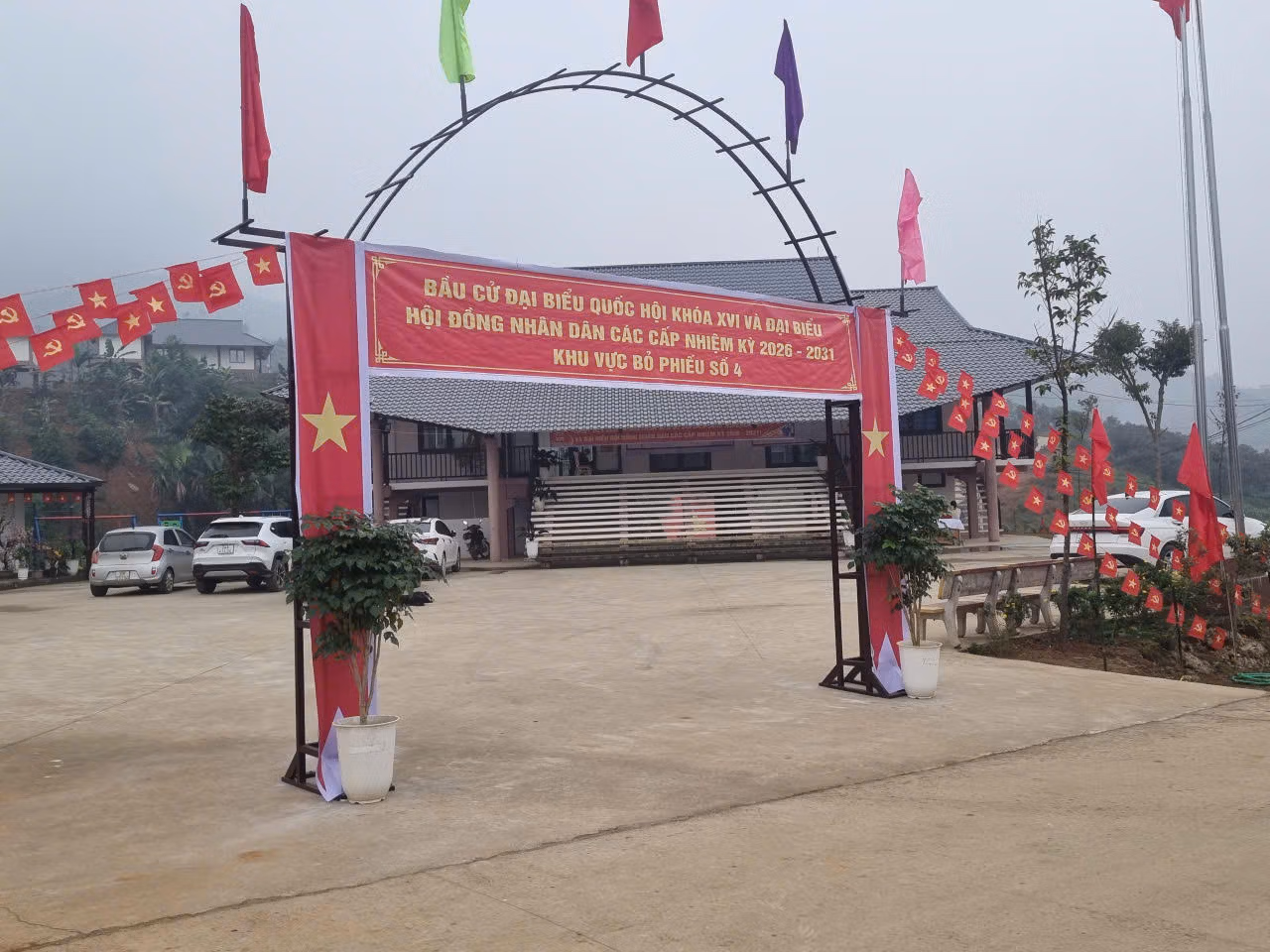 Điểm bỏ phiếu thôn Làng Nủ mới sẵn sàng cho cử tri đi bỏ phiếu. Ảnh: Ngô Hùng.
