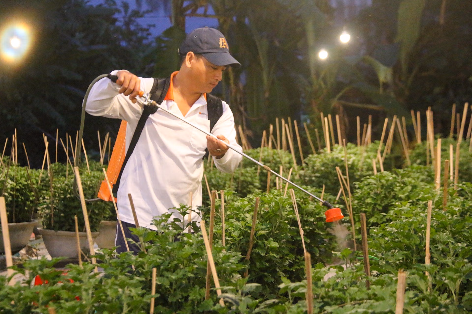 Người dân miền Trung tất bật chăm sóc vụ hoa Tết Nguyên đán 2024 Thứ Tư 22/11/2023 13:39 (GMT+7) Ghi nhận tại các tỉnh Thừa Thiên - Huế, Quảng Trị người dân đang tất bật chăm sóc vụ hoa phục vụ dịp Tết Nguyên đán năm 2024. Bà Hồ Thị Mỹ Thái (42 tuổi, trú tại thôn Vân Thê Thượng, xã Thủy Thanh, thị xã Hương Thủy, tỉnh Thừa Thiên - Huế) cho biết, 3 năm trở lại đây, cứ vào độ tháng 10 âm lịch bà lại được các chủ vườn trên địa bàn thuê đi tạo dáng cho các chậu hoa cúc để chuẩn bị bán trong dịp Tết Nguyên đán. Ảnh: Nghĩa Văn.Ông Nguyễn Mậu Hòa (48 tuổi, chồng bà Thái) cho hay, để có được chậu hoa cúc bắt mắt, người tạo dáng phải quan sát kỹ lưỡng và hình dung trước về vị trí, hình dáng của cây sau khi được buộc cố định vào các thanh tre. Ảnh: Nghĩa Văn.“Tùy theo kích thước mà số lượng thanh tre được cắm vào cũng khác nhau. Thông thường, mỗi chậu rộng 35 - 45cm sẽ được cắm từ 40 - 50 thanh tre. Các thanh tre có nhiệm vụ cố định vị trí của cây và tạo dáng, làm cho chậu hoa cúc trở nên đẹp mắt. Việc buộc cố định cây vào thanh tre phải hết sức khéo léo để tránh việc cây bị đứt gãy”, bà Thái cho hay. Ảnh: Nghĩa Văn.Ông Phan Huy (68 tuổi, trú tại tổ dân phố Vân Dương, phường Thủy Vân, TP Huế, tỉnh Thừa Thiên - Huế) cho biết, đến nay ông đã có hơn 10 năm kinh nghiệm trong việc trồng, chăm sóc hoa cúc phục vụ nhu cầu dịp Tết Nguyên đán. Ảnh: Nghĩa Văn.Theo đó, mỗi vụ hoa được trồng trong khoảng 6 tháng. Để hoa cúc nở đúng dịp Tết Nguyên đán, người dân còn phải thường xuyên thắp điện vào ban đêm. “Đến khoảng đầu tháng 11 âm lịch sẽ tắt bóng điện. Thời điểm cụ thể thì tùy theo sự phát triển của cây ở các vườn. Khi bóng điện không thắp nữa thì cây sẽ bắt đầu ra nụ. Lúc này, nhà vườn lại tiếp tục đi bẻ bỏ bớt nụ nhỏ ở thân để tập trung cho cây phát triển nụ chính”, ông Huy chia sẻ. Ảnh: Nghĩa Văn.Ông Nguyễn Xuân Việt (38 tuổi, trú tại thôn Vân Thê Trung, xã Thủy Thanh) cho hay, năm nay gia đình ông trồng 350 chậu hoa cúc với đường kính của chậu phổ biến từ 35 - 45 cm. Ảnh: Nghĩa Văn.Bằng kinh nghiệm của mình, ông Việt cho hay, để chậu hoa cúc phát triển tươi tốt, cành lá xanh tươi, khỏe khoắn, người trồng phải thường xuyên theo dõi phòng trừ sâu bệnh trên cây, đặc biệt là bệnh nấm lá. Ảnh: Nghĩa Văn.Chủ tịch UBND xã Thủy Thanh Trần Duy Việt cho hay, trên địa bàn toàn xã hiện có 120 hộ trồng hoa cúc phục vụ dịp Tết Nguyên đán 2024 với số lượng 72.970 chậu. Năm 2022, việc trồng hoa cúc chậu phục vụ dịp Tết Nguyên đán tại xã Thủy Thanh ước đạt 8,4 tỷ đồng, trong đó, lợi nhuận ước đạt 4,6 tỷ đồng. Ảnh: Nghĩa Văn.Theo ông Nguyễn Thành Trung, Chủ tịch UBND phường Thủy Vân, hiện có khoảng 60 hộ dân trên địa bàn trồng hoa cúc phục vụ dịp Tết Nguyên đán năm 2024 với khoảng 30.000 chậu. Chính quyền địa phương yêu cầu các gia đình trồng hoa phải đảm bảo an toàn vệ sinh môi trường. Ảnh: Nghĩa Văn.Chi cục Trưởng Chi cục Trồng trọt và Bảo vệ thực vật tỉnh Thừa Thiên - Huế Hồ Đính cho hay, việc sản xuất hoa phục vụ dịp Tết Nguyên đán chủ yếu được trồng tập trung tại TP Huế, thị xã Hương Thủy và huyện Phú Vang với số lượng khoảng 120.000 chậu. Ảnh: Nghĩa Văn.Tại tỉnh Quảng Trị, làng hoa An Lạc (phường Đông Giang, TP Đông Hà) được xem là “vựa hoa” của tỉnh. Thời điểm này, người dân trồng hoa tại đây cũng đang tất bật chăm sóc hoa để kịp cho phục vụ dịp Tết Nguyên đán 2024. Ảnh: NK.Ông Nguyễn Văn Kiệt, Bí thư Đảng ủy, Chủ tịch UBND phường Đông Giang cho biết, vụ hoa tết năm nay đang diễn ra hết sức thuận lợi, ít ghi nhận tình trạng sâu bệnh và không bị ảnh hưởng nhiều bởi những đợt mưa lụt vừa qua. Tuy nhiên, do ảnh hưởng của tình hình kinh tế nên sản lượng sản xuất hoa phục vụ Tết Nguyên đán năm 2024 có giảm so với năm trước. Ảnh: NK. Nghĩa Văn