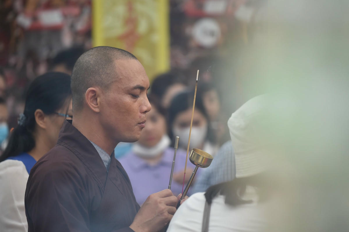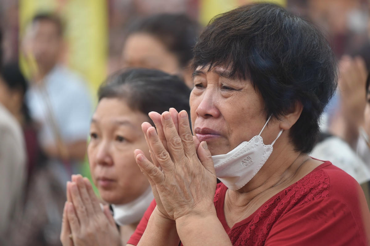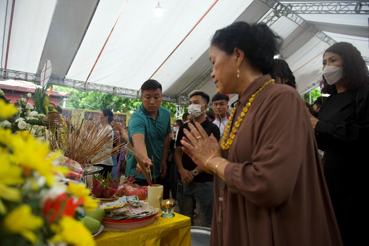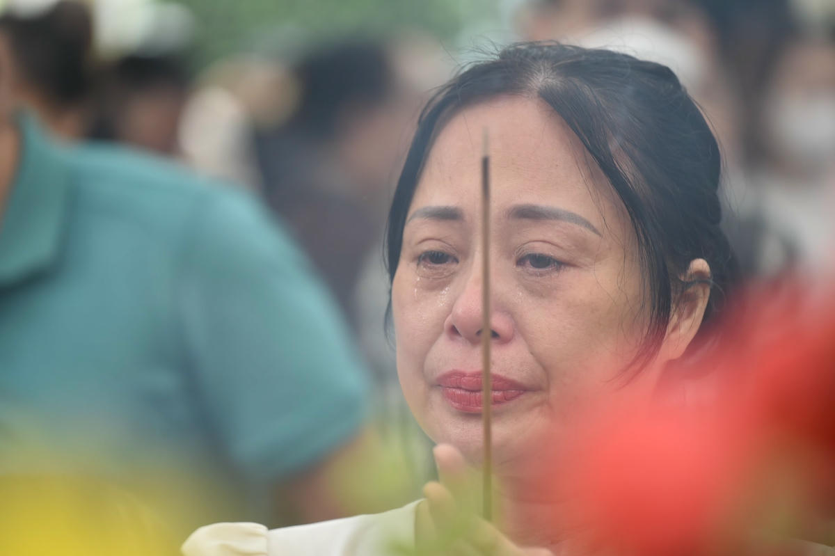 Ngày 15/9, hàng nghìn người đổ về chùa Phụng Lộc cầu siêu cho các nạn nhân tử vong trong vụ cháy chung cư mini ở phố Khương Hạ.