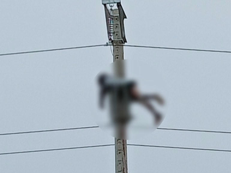 Người đàn ông bị điện giật cháy đen, cơ thể treo lơ lửng trên cột