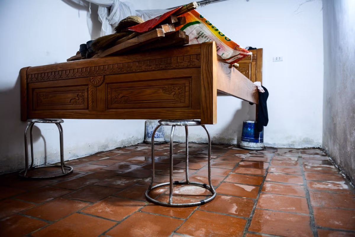 Người dân thôn Bùi Xá nản lòng trước cảnh mưa ngập kéo dài Thứ Sáu 09/09/2022 17:01 (GMT+7) Đợt mưa nhiều ngày liên tiếp gần đây đã gây ra tình trạng ngập úng kéo dài ở thôn Bùi Xá (thị trấn Thanh Mai, Chương Mỹ, Hà Nội), ảnh hưởng tiêu cực tới đời sống của người dân nơi đây. Sau trận mưa lớn kéo dài 2 ngày nay, toàn bộ diện tích thôn Bùi Xá bị ngập úng nặng nề.Ngập úng kéo dài khiến việc di chuyển của người dân gặp nhiều khó khăn.Theo chia sẻ của người dân, những chỗ ngập sẽ cao tầm bắp chân. Thậm chí có những chỗ có thể ngập quá đầu gối người trưởng thành.Nước dâng cao khiến nhiều nhà dân sớm chìm trong biển nước.Do đã quá quen với cảnh ngập úng hàng năm, nên người dân đã sớm có kế hoạch "sơ tán" vật dụng trong nhà lên trước cả khi nước ngập.Giường ngủ cũng đã được kê lên cao hơn so với mặt đất khoảng 50 cm, đề phòng việc nước có thể tràn vào trong nhà."Hàng năm thì cũng đến tầm này là sẽ bắt đầu ngập nên vợ chồng tôi cũng đã dọn dẹp trước đồ đạc, kê cao bàn ghế, giường tủ trước khi nước đến". Ông Đăng (62 tuổi) chia sẻ.Nhiều hộ gia đình tranh thủ những lúc tạnh ráo để mang quần áo ra phơi.Nhiều điểm trong thôn Bùi Xá do ngập quá sâu, nên những chiếc thuyền đã trở thành phương tiện đi lại chính của người dân.Mưa ngập khiến rác thải trôi lềnh phềnh vào nhà dân, gây mất vệ sinh môi trường.Đến tầm trưa, tình trạng ngập úng đã có phần rút bớt nước, nhưng mưa vẫn chưa thấy có dấu hiệu ngừng. Đặng Long