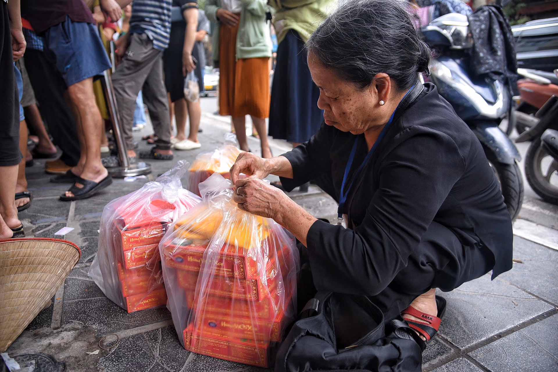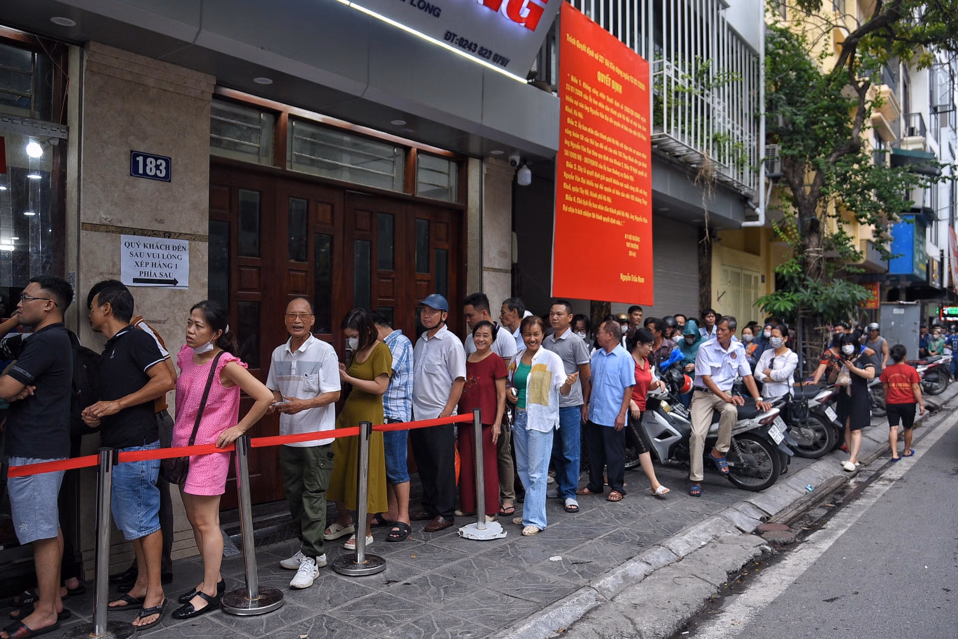 Người dân xếp hàng dài mua bánh Trung thu tại Hà Nội Thứ Tư 27/09/2023 14:54 (GMT+7) Trưa ngày 27/9 tại phố Thụy Khuê (quận Tây Hồ, Hà Nội) hàng dài người dân tới xếp hàng chờ hàng tiếng đồng hồ để mua bánh Trung thu. Tết Trung thu đang cận kề, nhu cầu mua bánh Trung thu tăng cao tại một cơ sở sản xuất và bán bánh Trung thu nằm trên phố Thụy Khuê hiện có rất đông người dân đang xếp hàng chờ mua bánh. Thậm chí, lượng bánh Trung thu không đủ bán, cửa hàng phải treo biển hết bánh.Thậm chí, lượng khách đông quá cửa hàng bán bánh Trung thu này còn phải thuê bảo vệ để hướng dẫn các khách hàng.Cửa hàng này có 4 ô bán bánh đều trong tình trạng chật kín.Thậm chí, nhiều người mua bánh với số lượng lớn phải sử dụng giấy để tránh mua nhầm.Cô Lê Hoa nhà ở Kim Mã (Hà Nội) cho hay, do chất lượng bánh ở đây khá ngon so với các cơ sở khác nên năm nào cô cũng đến đây mua."Tôi đứng xếp hàng gần một tiếng đồng hồ nhưng vẫn chưa đến lượt. Tuy nhiên, do bánh ngon nên tôi vẫn cố gắng đợi thêm để mua về làm quà cho gia đình", cô Hoa chia sẻ.Do xếp hàng chờ đợi lâu, các khách hàng đến tiệm bánh này đều mua với số lượng lớn.Một khách hàng mua được 15 chiếc bánh cho gia đình với chi phí cho số bánh này là khoảng hơn 2 triệu đồng.Cửa hàng đưa ra thông báo hết bánh, nếu muốn mua khách hàng phải tiếp tục chờ đợi.Nhiều người trông ngóng chờ đến lượt. Lê Khánh