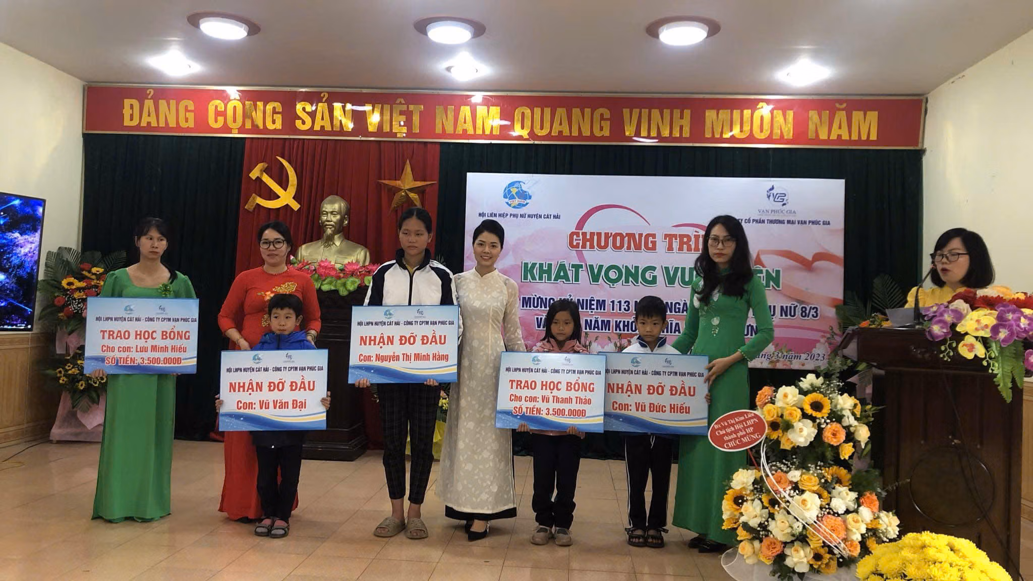 Bà Phạm Thị Bang (thôn Đôn Lương, đặc khu Cát Hải) - nuôi 3 cháu ngoại mồ côi cả bố và mẹ - cho biết: Con mất sớm, chồng cũng qua đời khiến những ngày đã qua tưởng như không gắng gượng nổi. Nhờ sự động viên của chị Liên và các hội viên phụ nữ, bốn bà cháu tôi dần vượt qua. Hàng tháng, chị Liên kết nối các phụ nữ hảo tâm nhận làm “Mẹ đỡ đầu”, hỗ trợ 500.000 đồng/cháu. Nhờ nguồn động viên đó, đến nay, các cháu tôi vẫn được cắp sách đến trường".