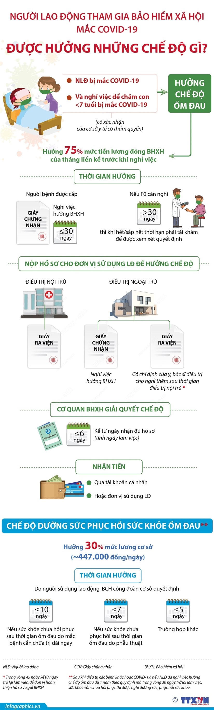 Người lao động mắc Covid-19 được hưởng những chế độ gì? Chủ Nhật 06/03/2022 18:05 (GMT+7) Người lao động có tham gia bảo hiểm xã hội nếu bị mắc Covid-19 được hưởng nhiều quyền lợi khi đáp ứng các điều kiện và hồ sơ theo quy định.