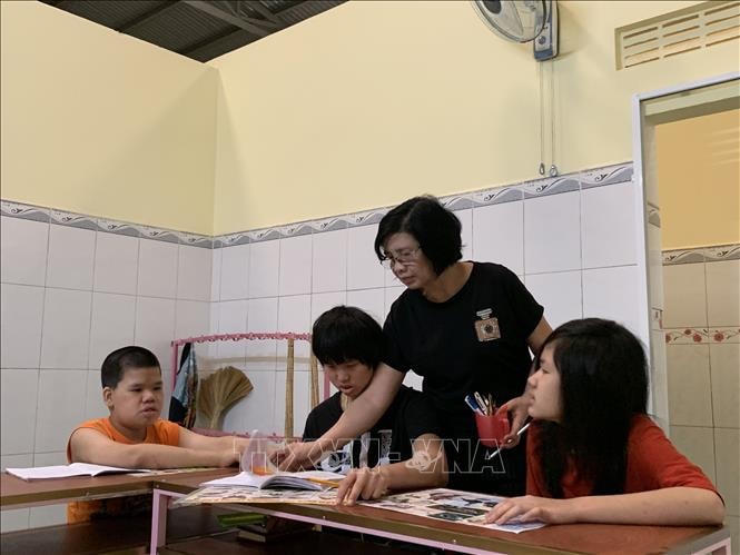 “Hiện ở đây có 45 em đang theo học, trong đó có 15 em bị hội chứng đao, 10 em bị tự kỷ, 15 em câm điếc, còn lại chậm phát triển trí tuệ. Mỗi đứa trẻ đến đây đều không may mắn ngay từ khi mới lọt lòng. Có những em vẫn còn cha mẹ, ngày ngày đến lớp học, tối lại đón về. Có em ở xa thì mỗi tuần về nhà một lần. Nhưng có những em hoàn cảnh rất đáng thương, không có cả người thân bên cạnh, các em ở với tôi và coi tôi như mẹ” - bà Hồng chia sẻ.