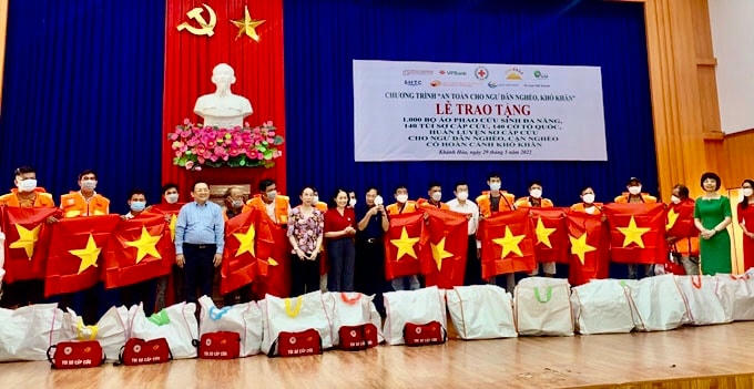 Chương trình “An toàn cho ngư dân nghèo, khó khăn” tặng 1.000 bộ áo phao, 140 túi sơ cấp cứu, 140 cờ Tổ quốc cho ngư dân nghèo tỉnh Khánh Hòa.